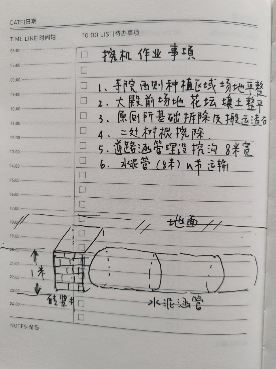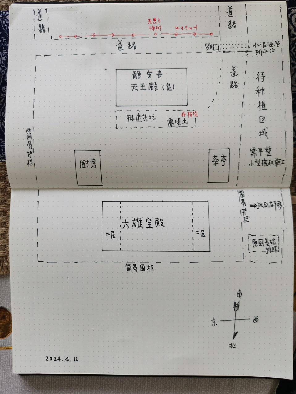 1、清理寺院院内环境,主要按计划种植一批小树等