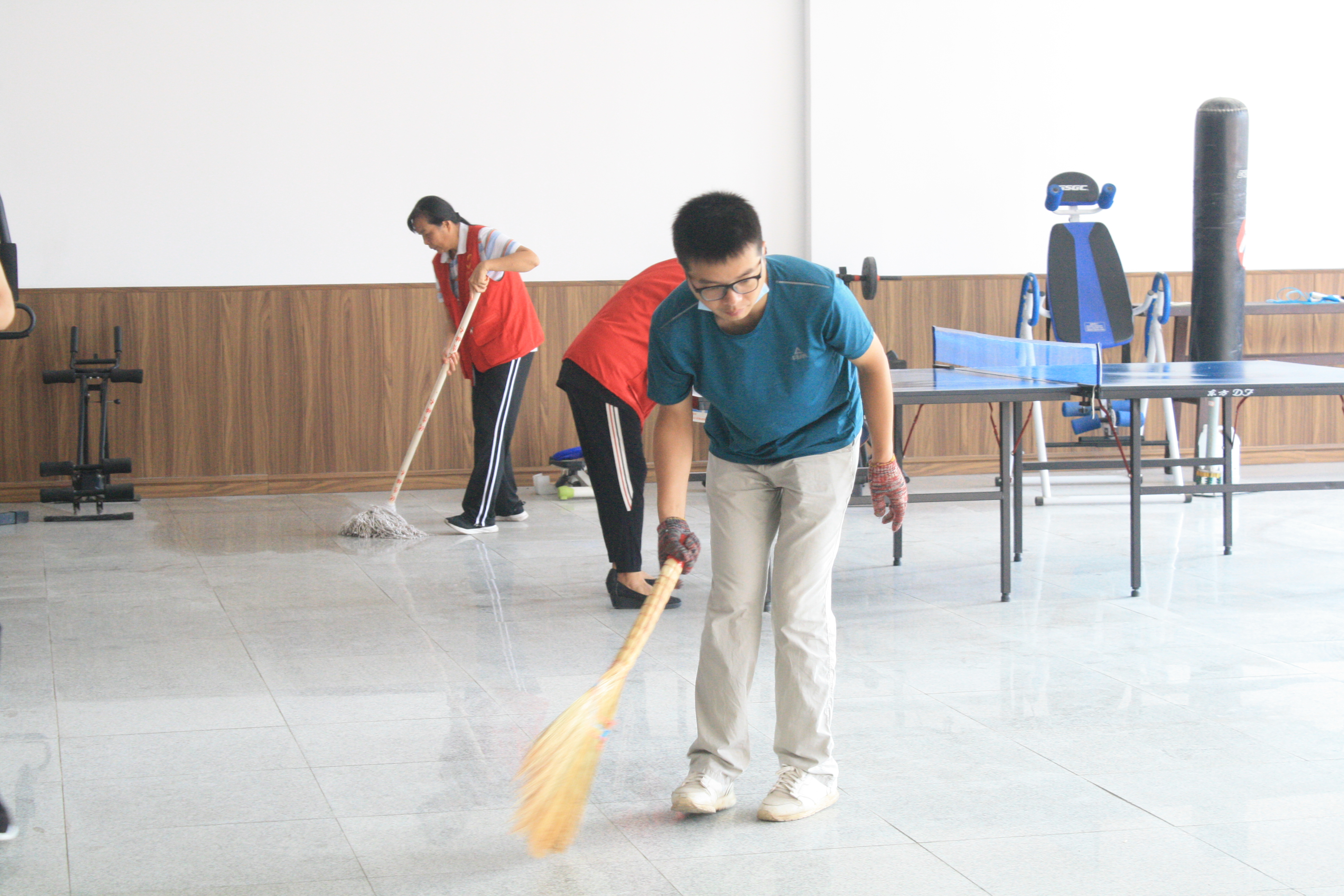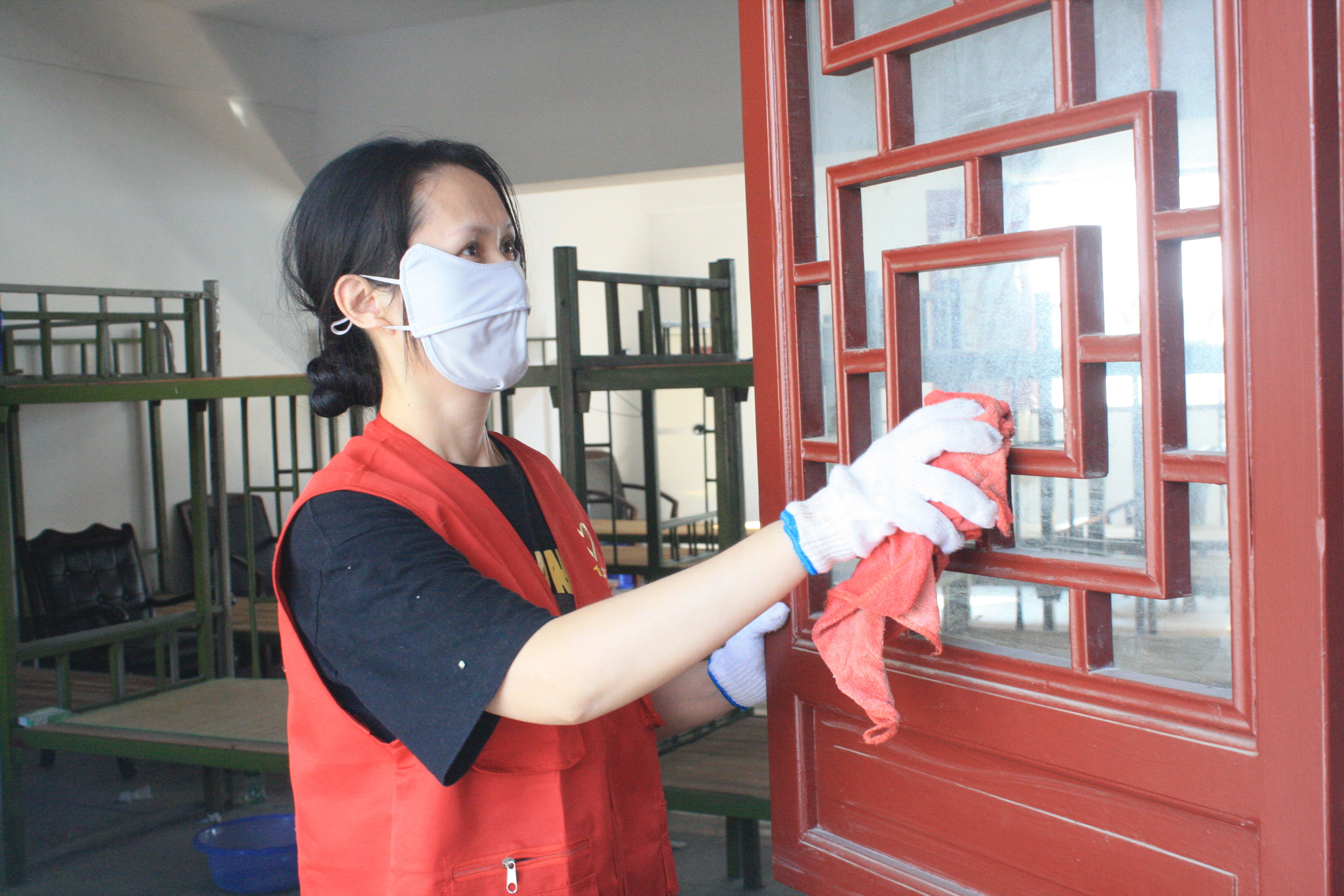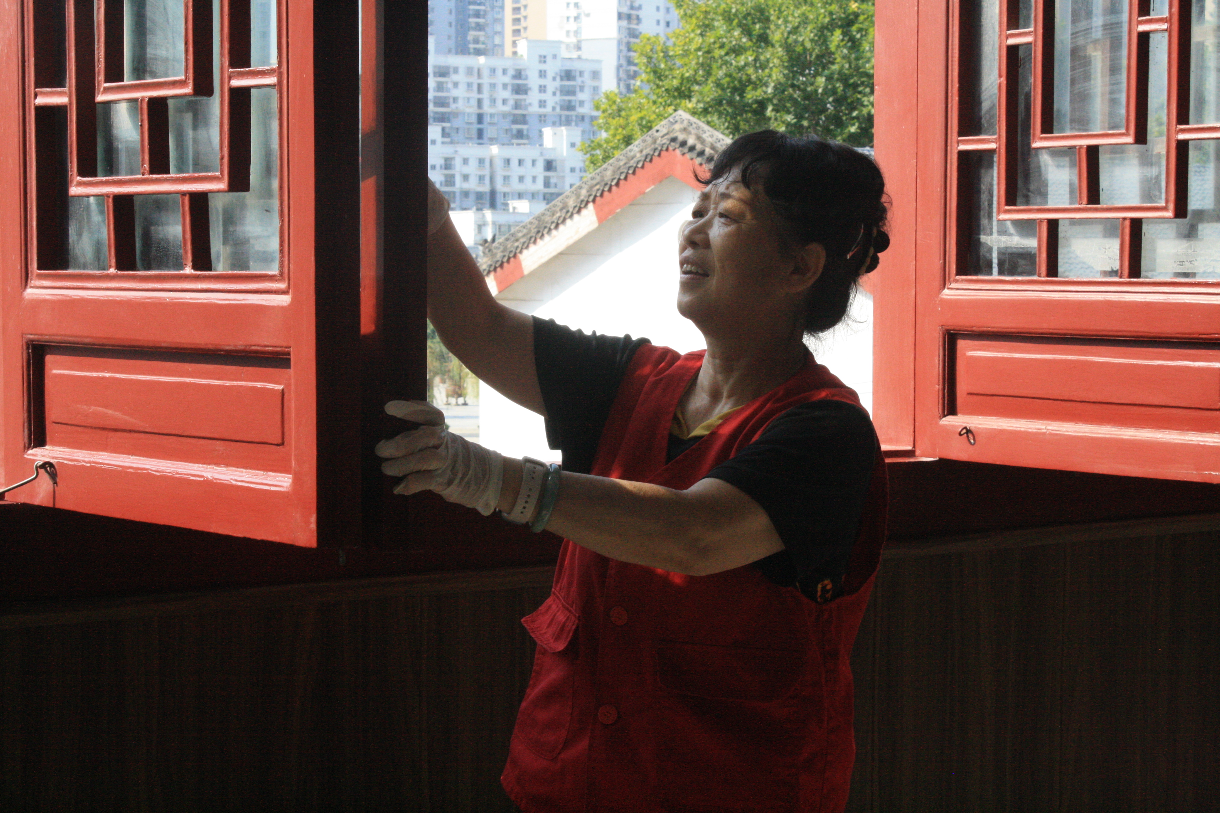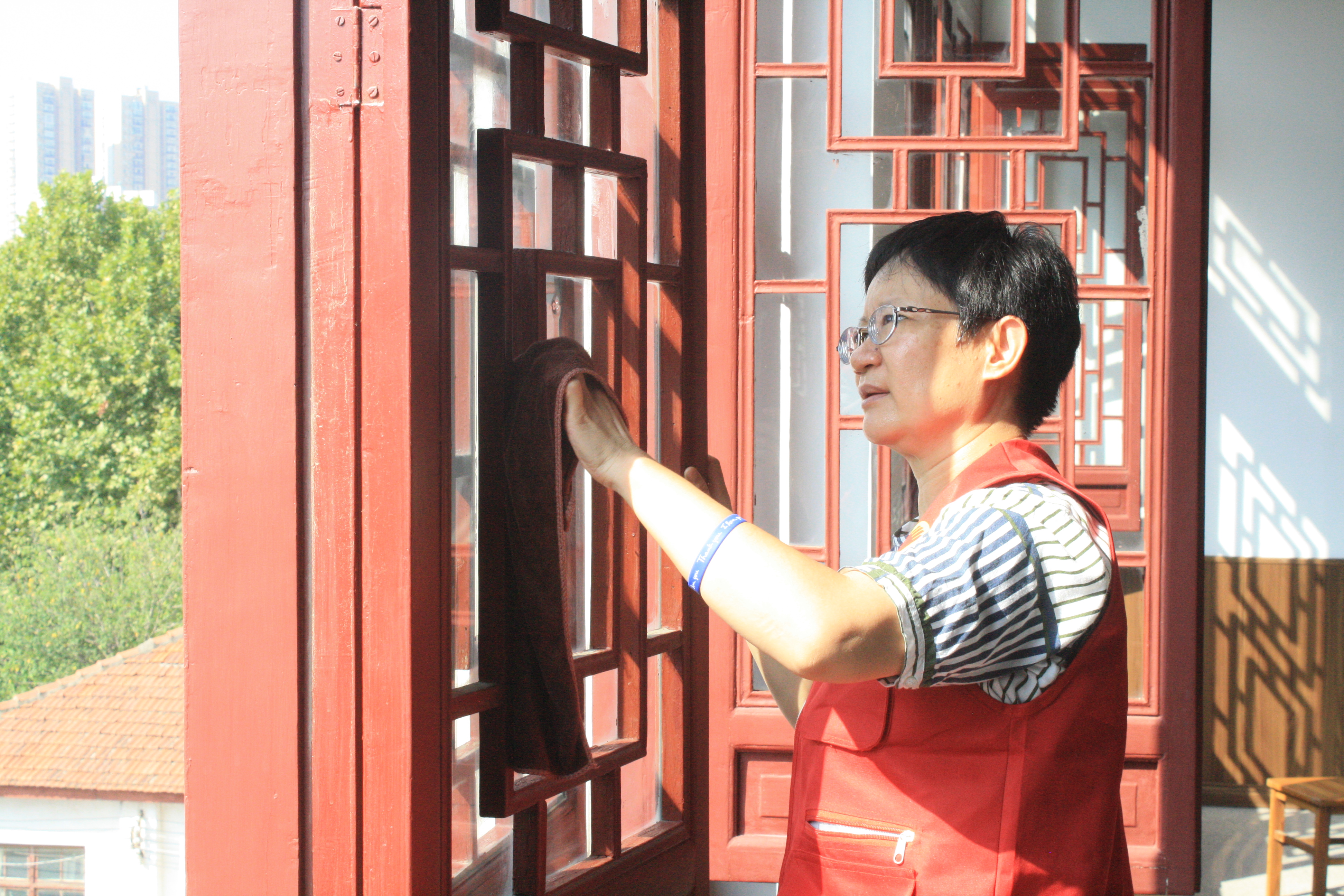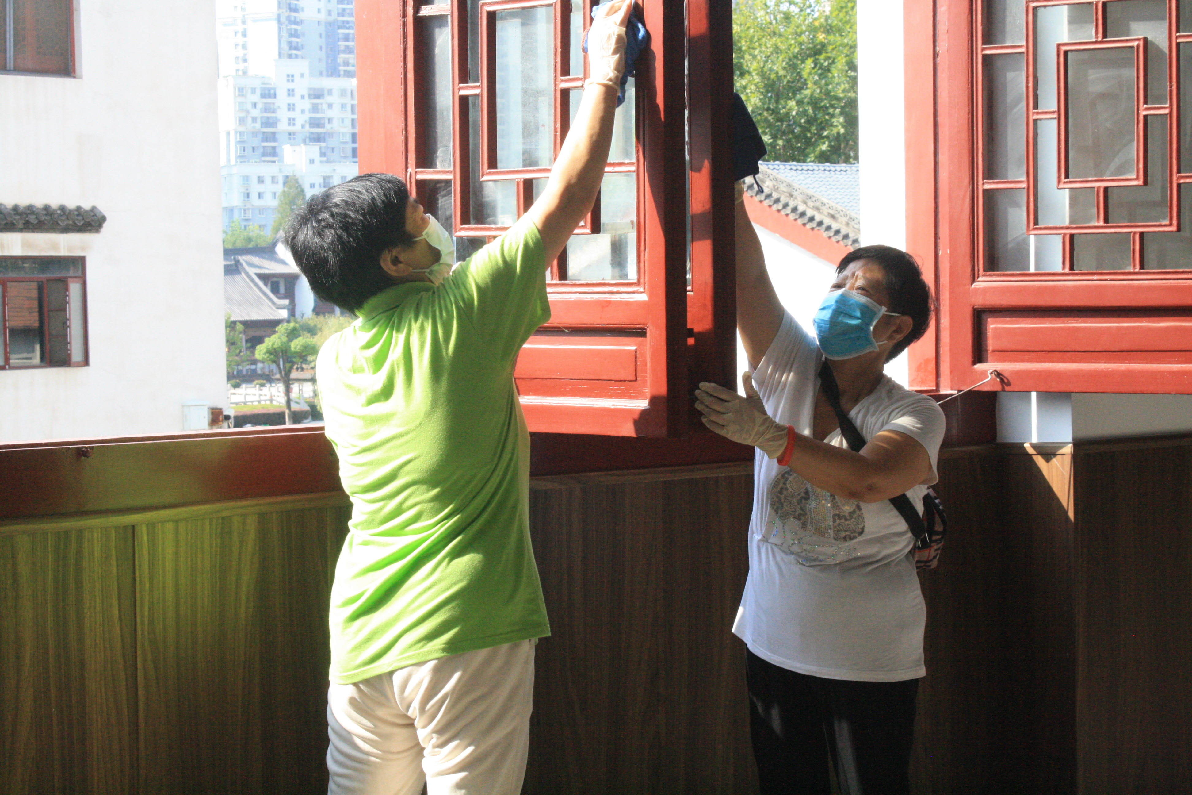三楼完成了,二楼一时就成了主战场,我充分利用了放置在楼斋堂的几乎全部木椅相拼来当梯子用,用于清洁二楼的窗户这一栋楼的窗户都是那种一面玻璃一面木条拼花格的,这种方式就是特别难以完全做到清洁干净的那种结构,加之确实也许是有些年没有做清洁的,那种成灰形成的污垢,清除起来很是费时费力。