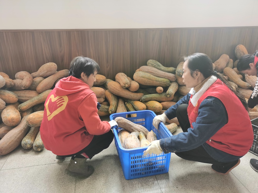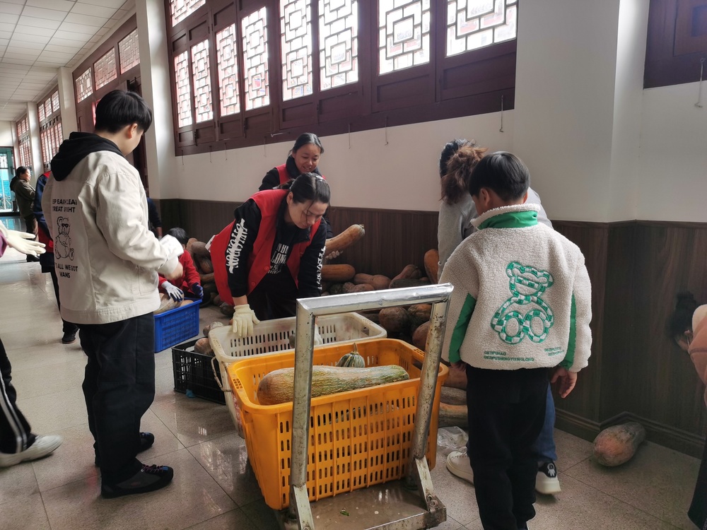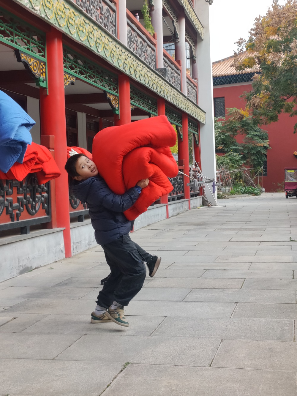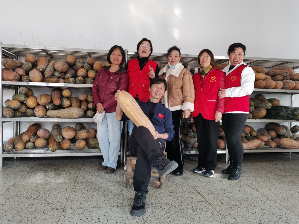 约两千斤南瓜需搬上斋堂二楼,上架摆放好,看似是一项工程级的事务,但不经意间我们风卷残云般的没多久就完成了,并且是圆满完成。