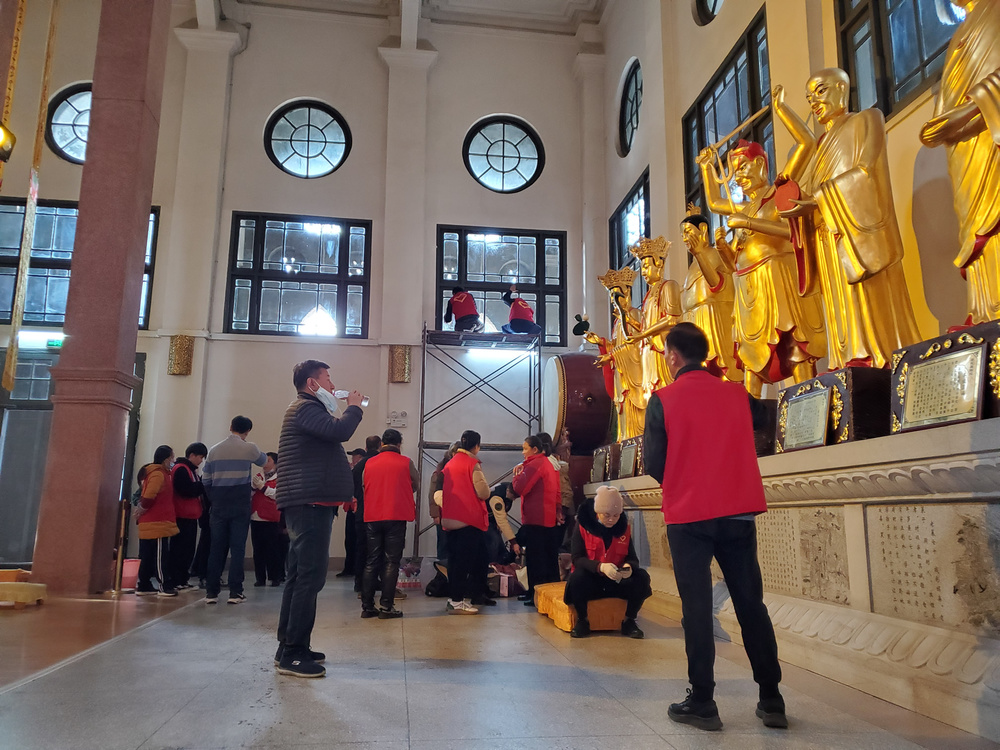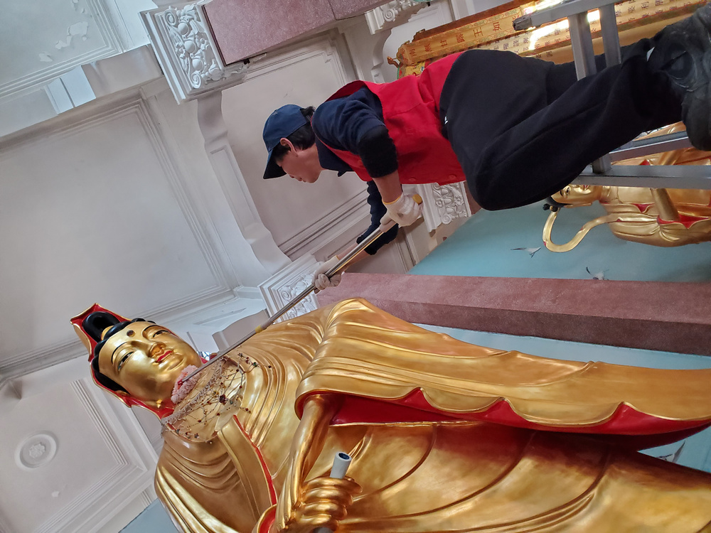清洁佛像其实是计划外的增加的事务,昨天除了我们佛友义工团队之外,还有“蒲公英种子公益”团队的不少义工也在大殿做事。