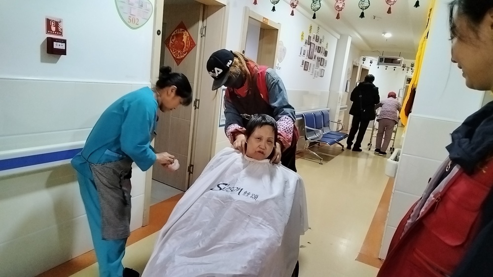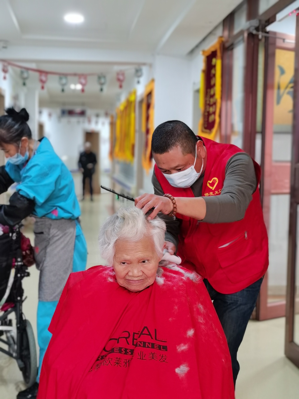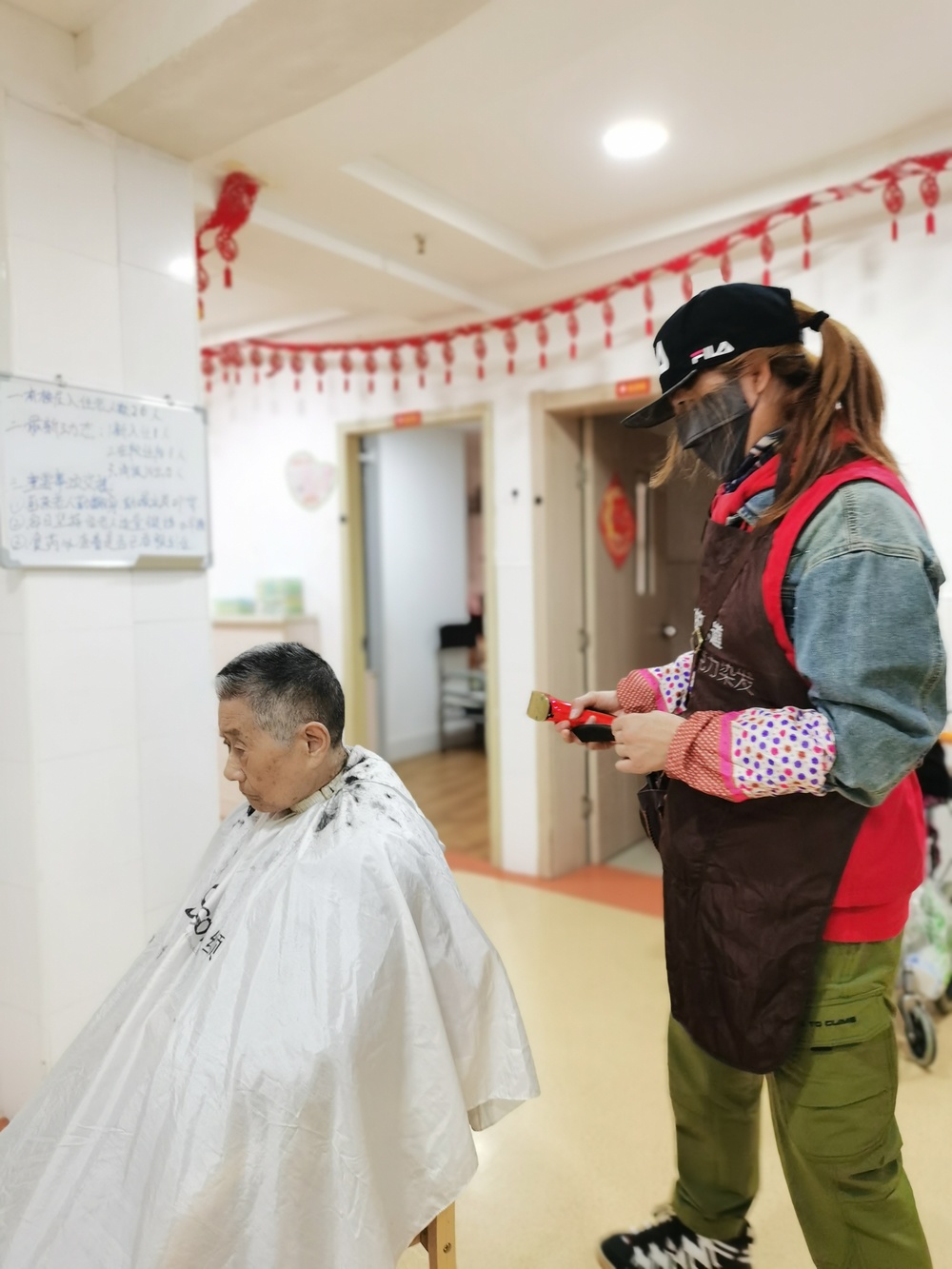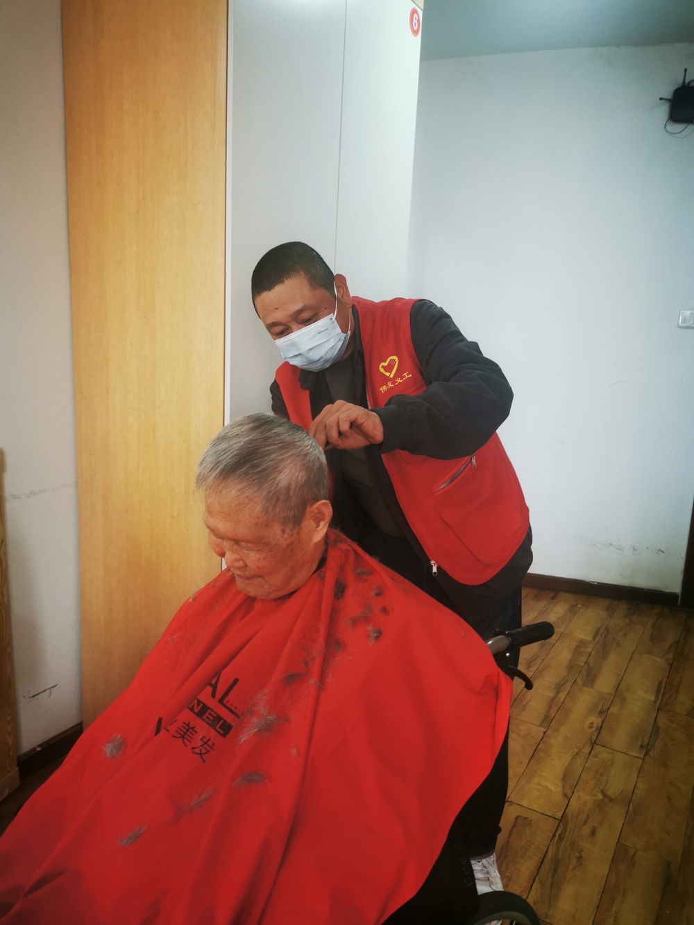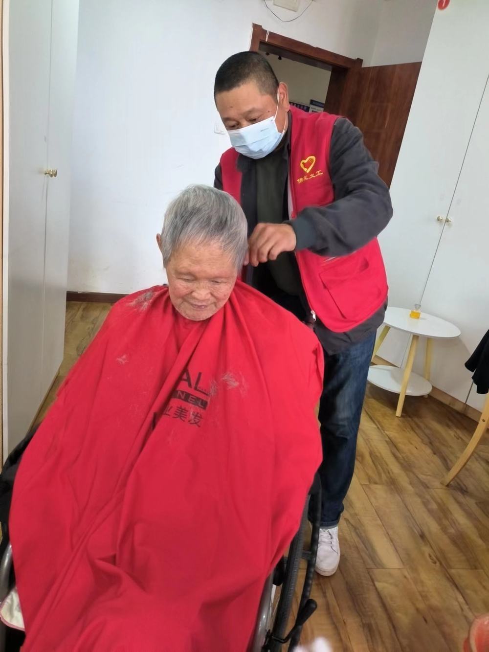 其实给老人们剪头发并非只是剪头发这么简单,还是有许多要与老人们交流的,了解老人,夸赞老人,甚至是哄欢喜老人