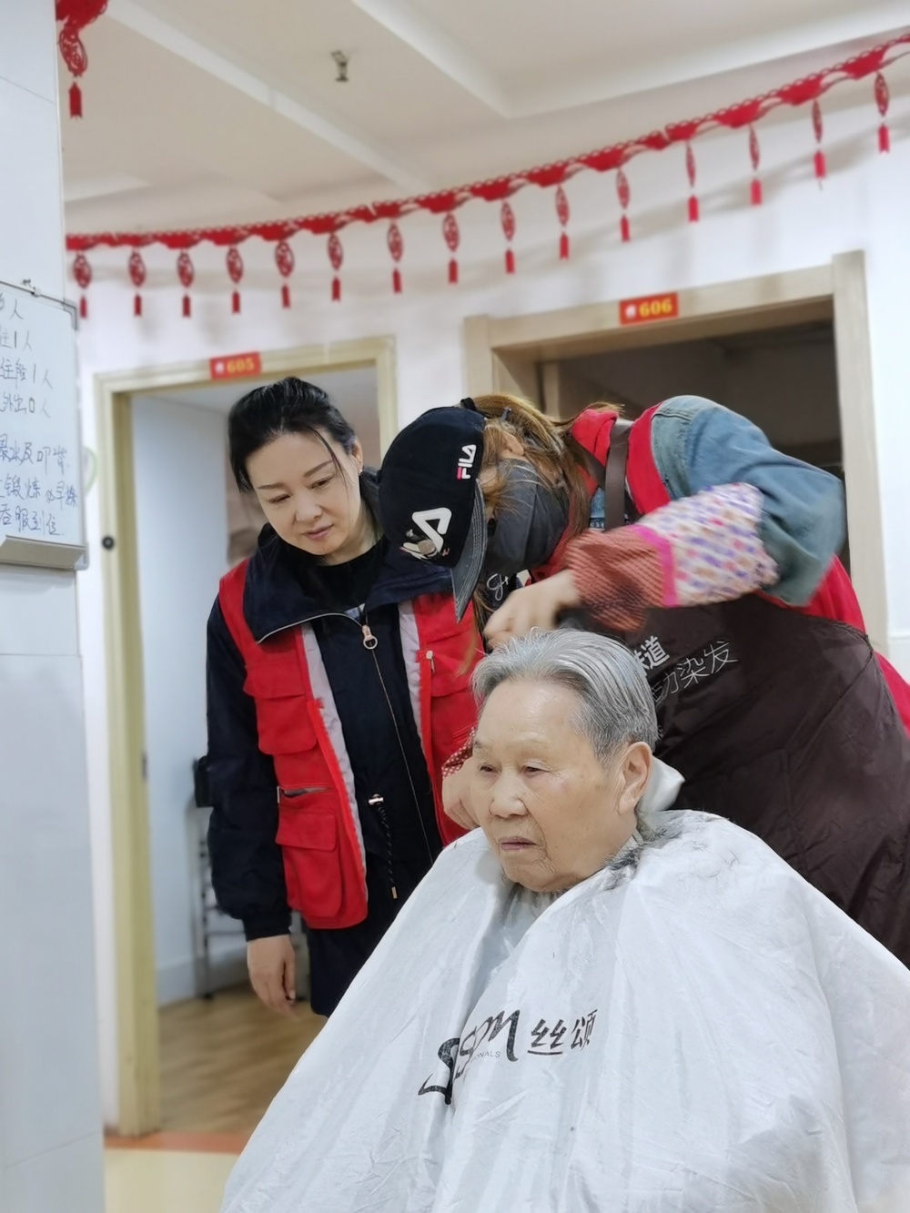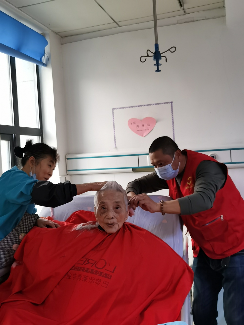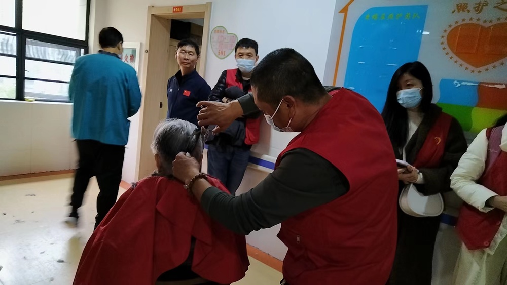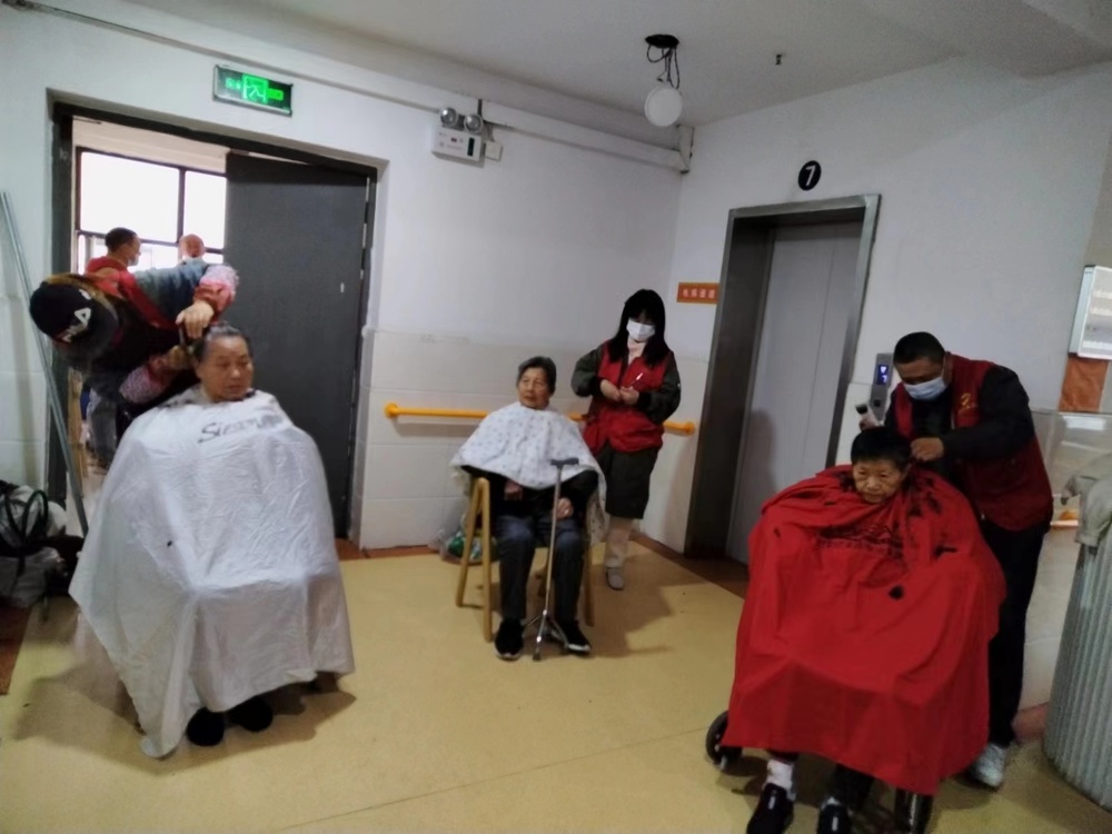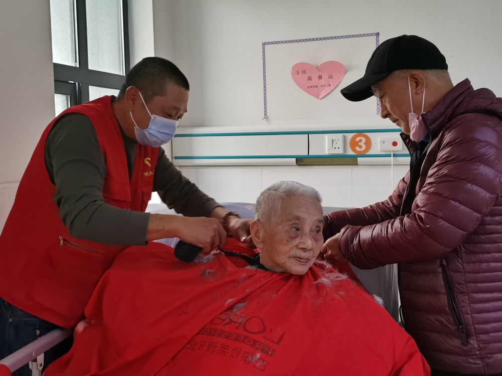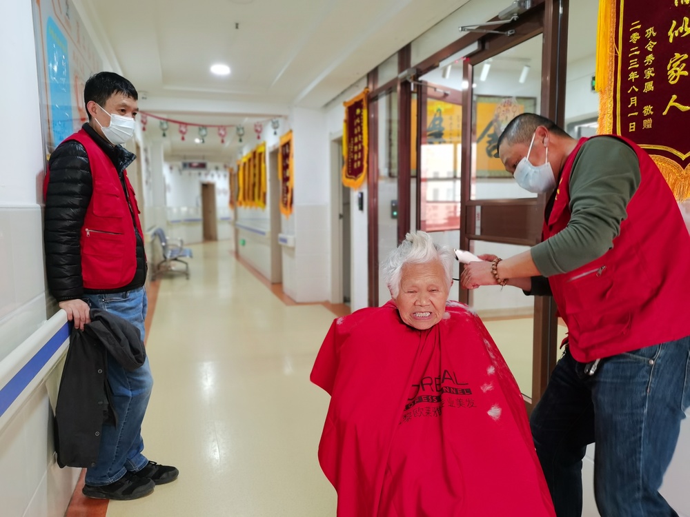 其实给老人们剪头发并非只是剪头发这么简单,还是有许多要与老人们交流的,了解老人,夸赞老人,甚至是哄欢喜老人