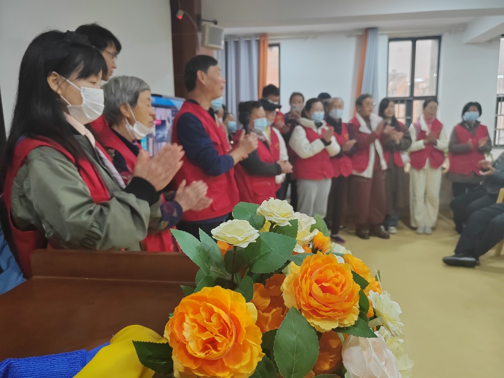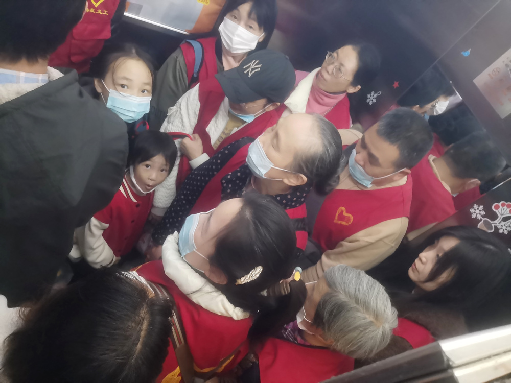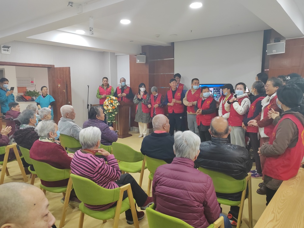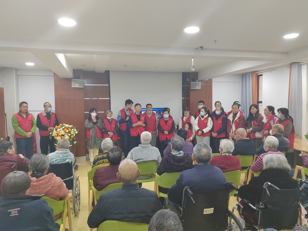 满满的两电梯,我们上到了养老院的七楼,活动场所院方已准备好了的,老人们也排排坐的啦!