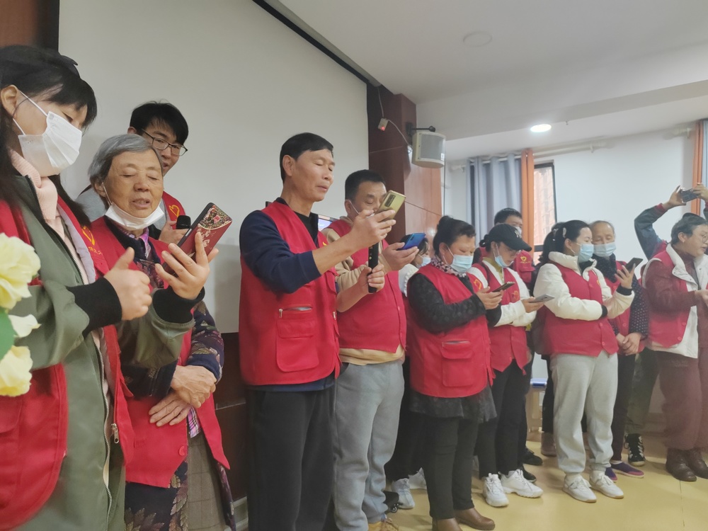 开场我们所有到场的义工师兄们合唱了“没有共产党就没有新中国”、“社会主义好”两首红歌。