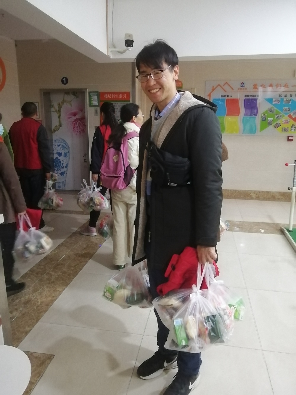 来的早些的义工师兄开始分袋装包的啦,一共正好100份。圆满