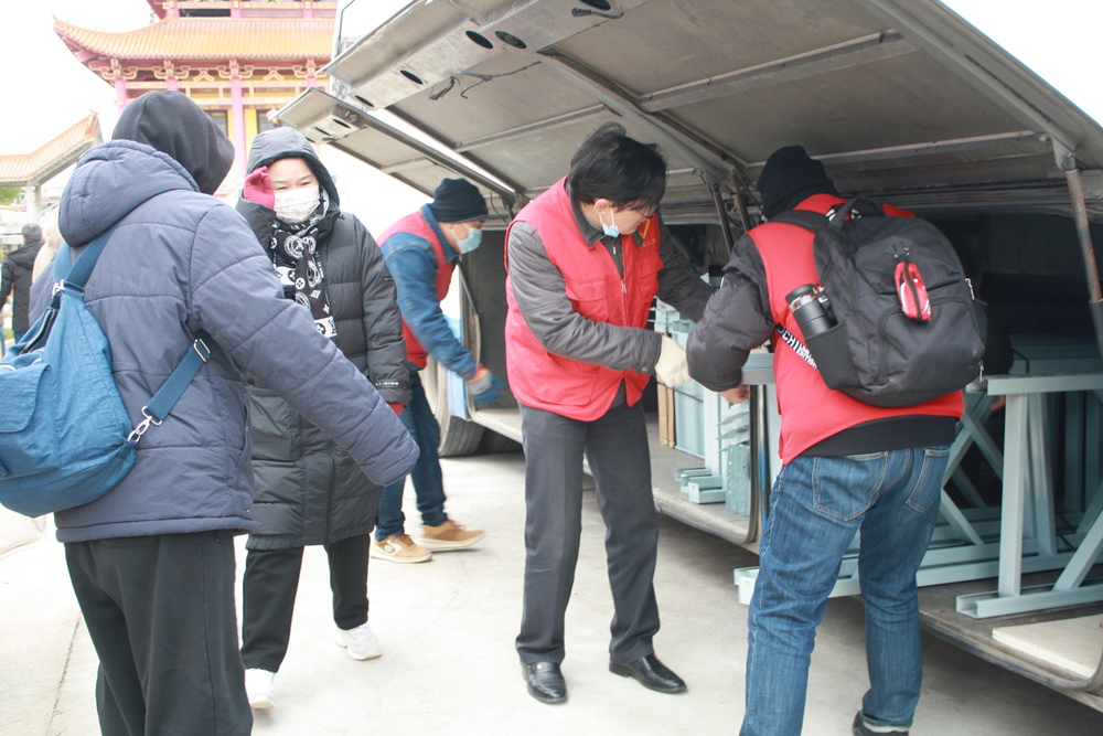 此行去佛诒寺,我们共购置了14套货架随车带将了过去