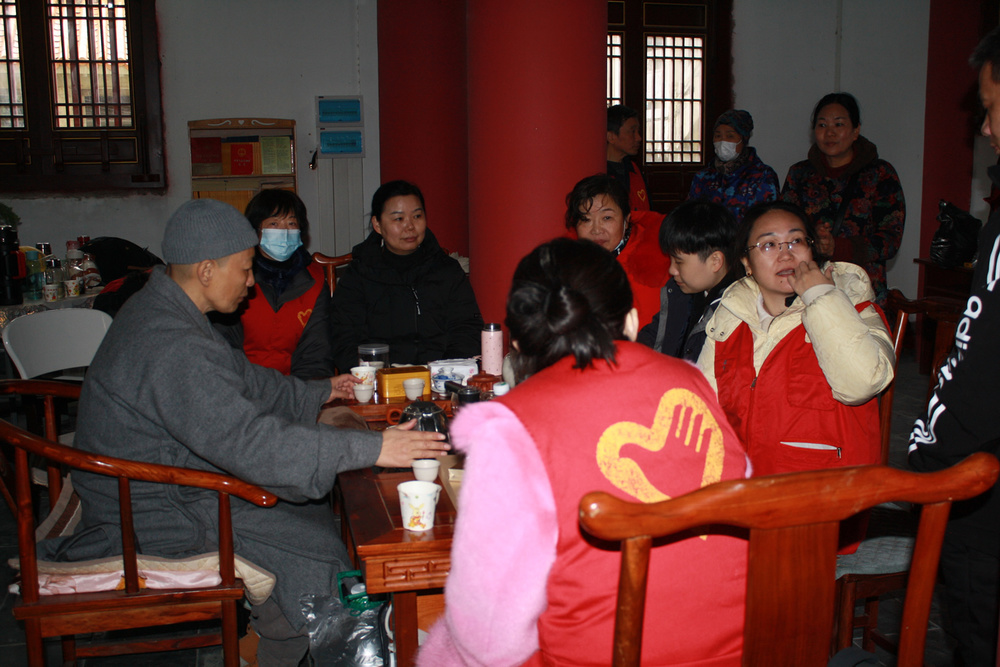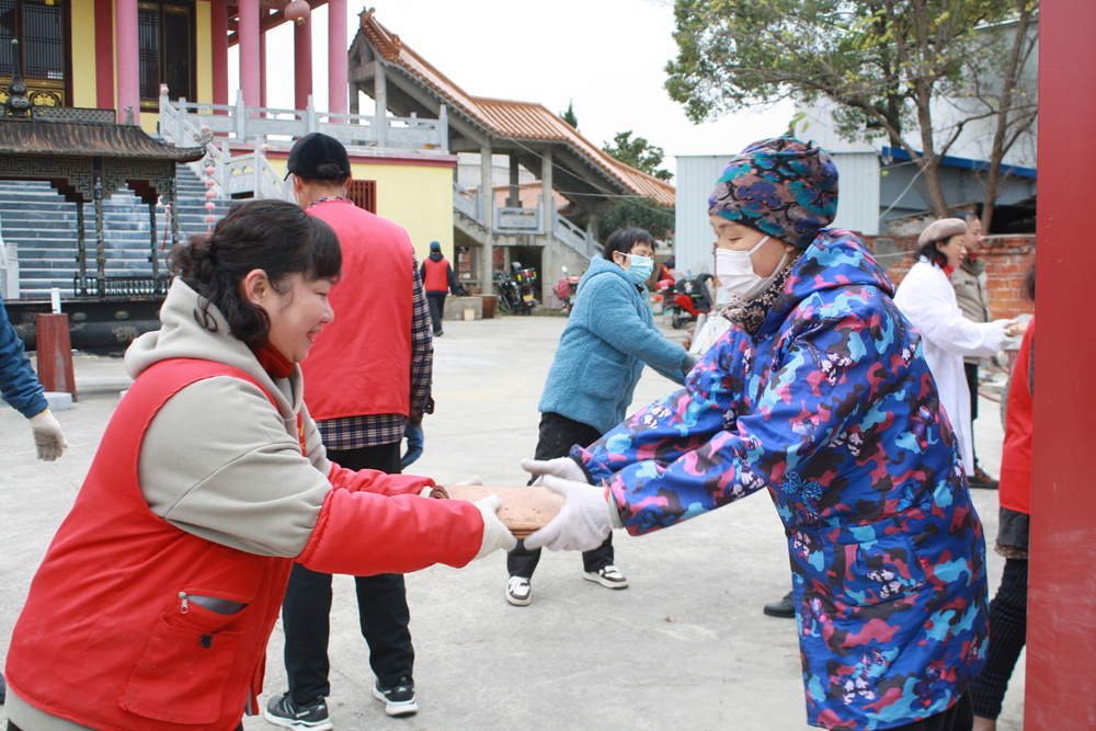 中午十点半,暂时收工,开始午斋,洪湖当地的师兄们给我们准备了可口、美味、热腾的午餐