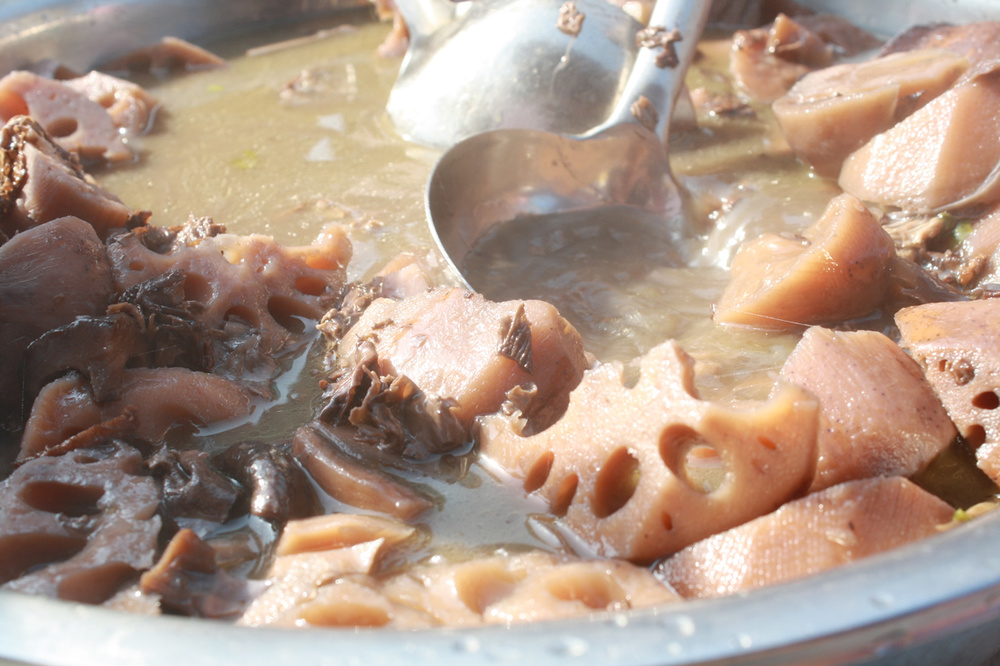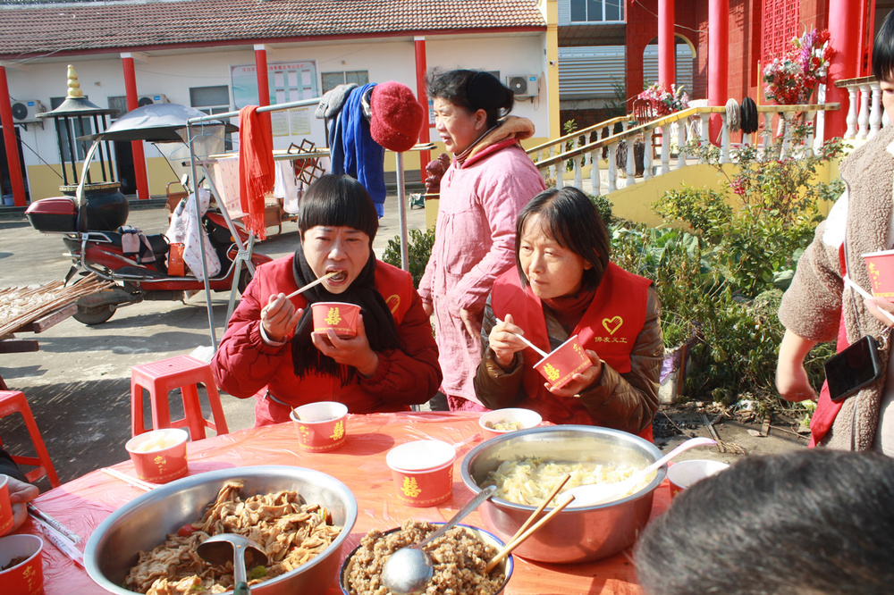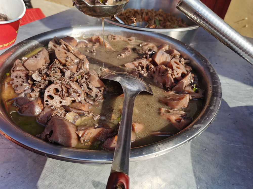 尽管室外气温寒冷,但师兄们的热情却如火热,中午时分,师父和当地的居士为我们烹制了美味的斋饭,尤其是那一锅鲜美的藕汤。