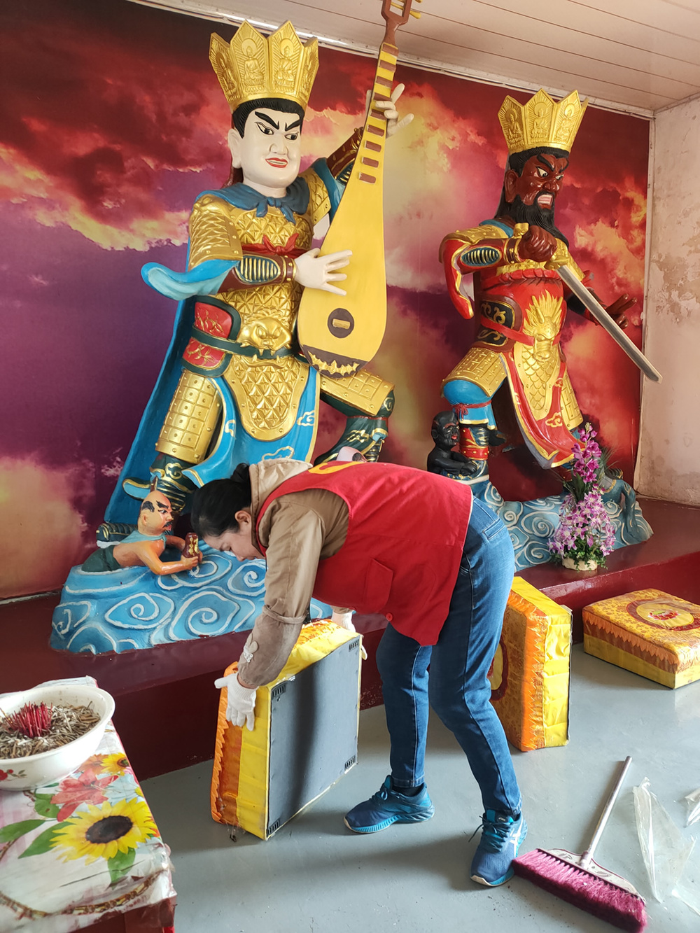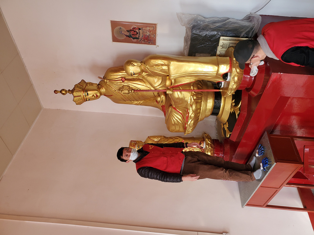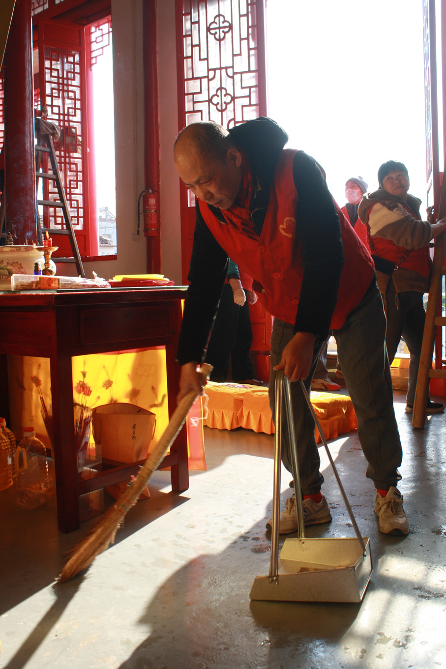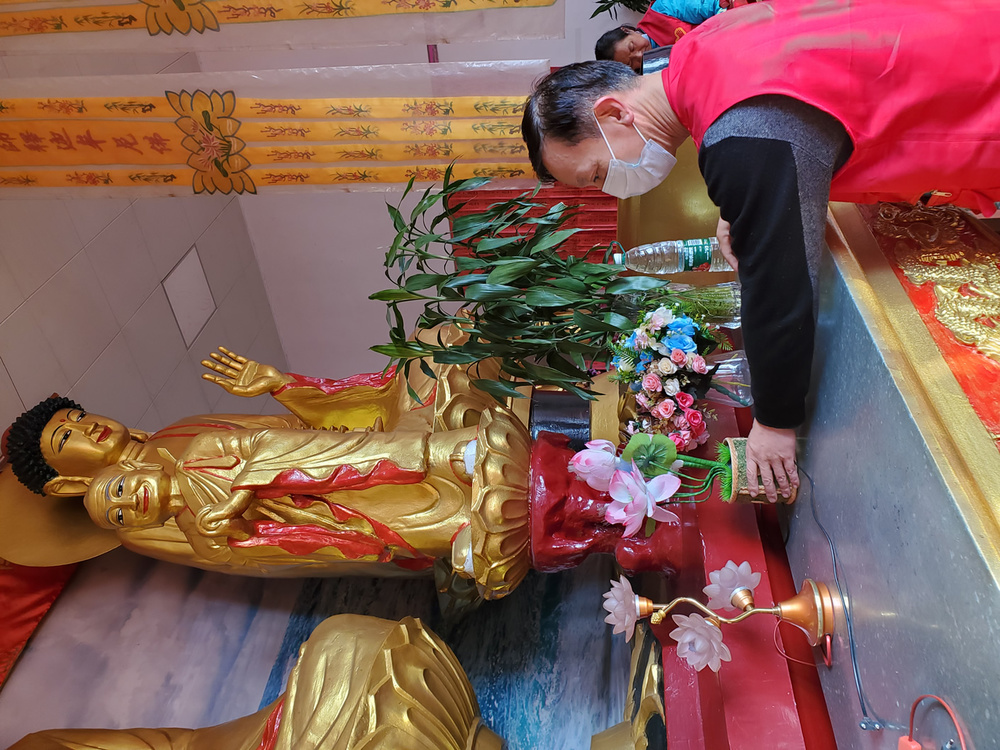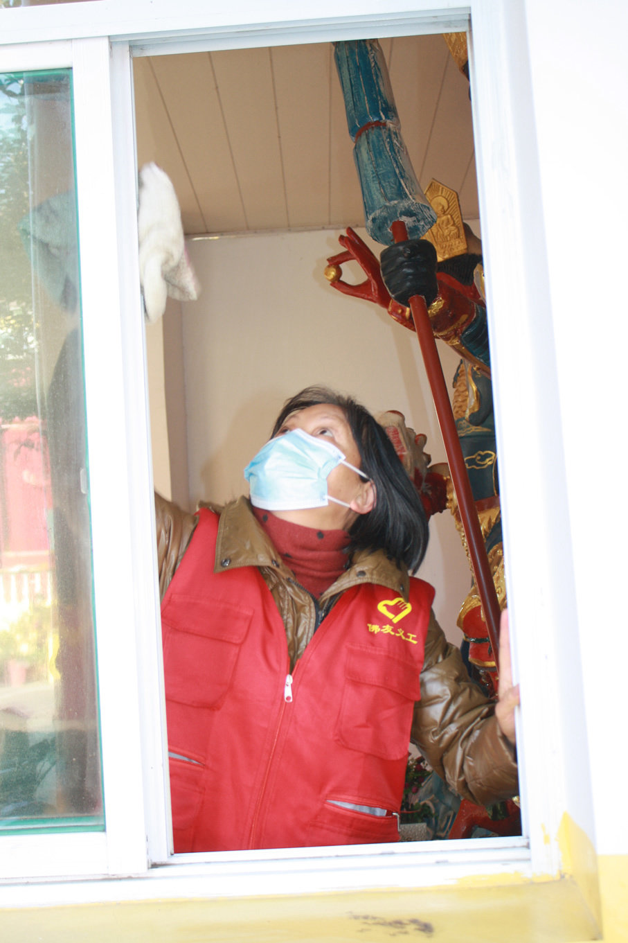 礼毕我迅速地安排大家分成两批,一批做大雄宝殿的清洁,一批做天王殿的清洁,抓紧时间开干