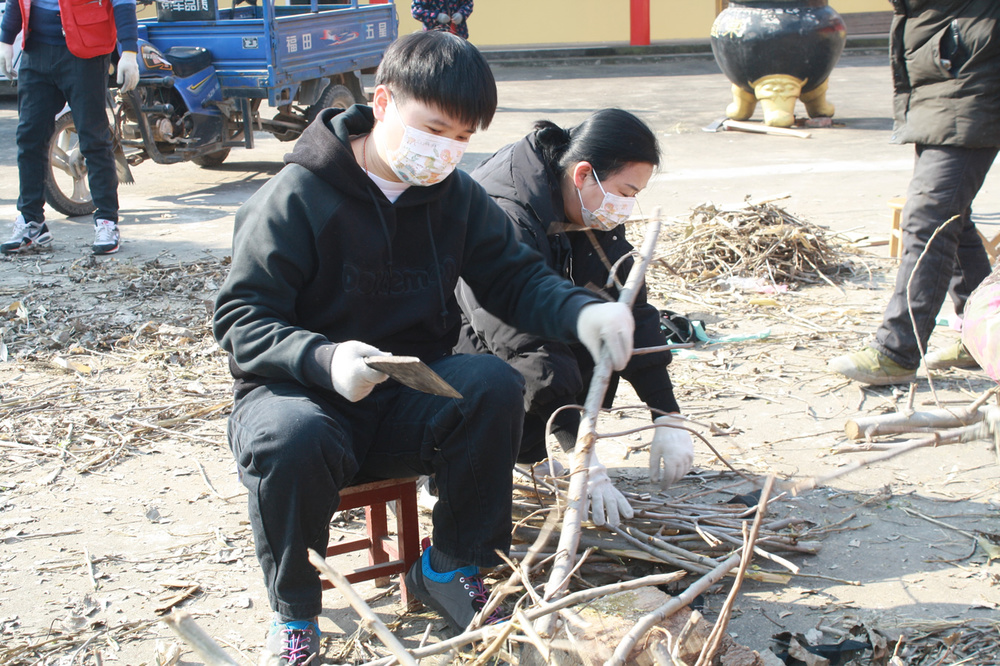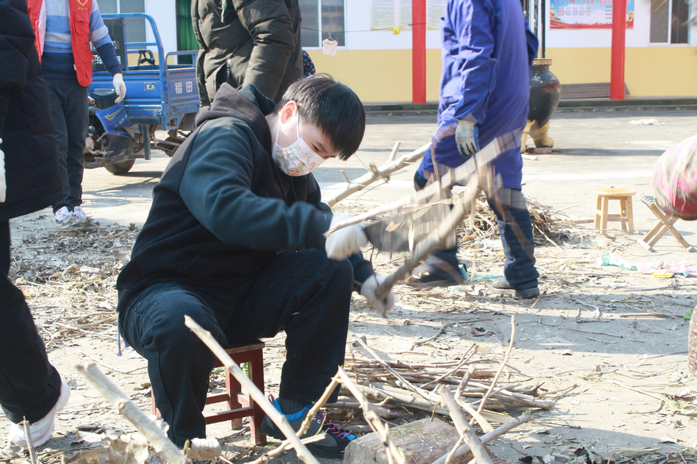 下午,师兄们依然有序地分工合作,上午负责清理的师兄留在寺庙院内,整理树枝柴火。