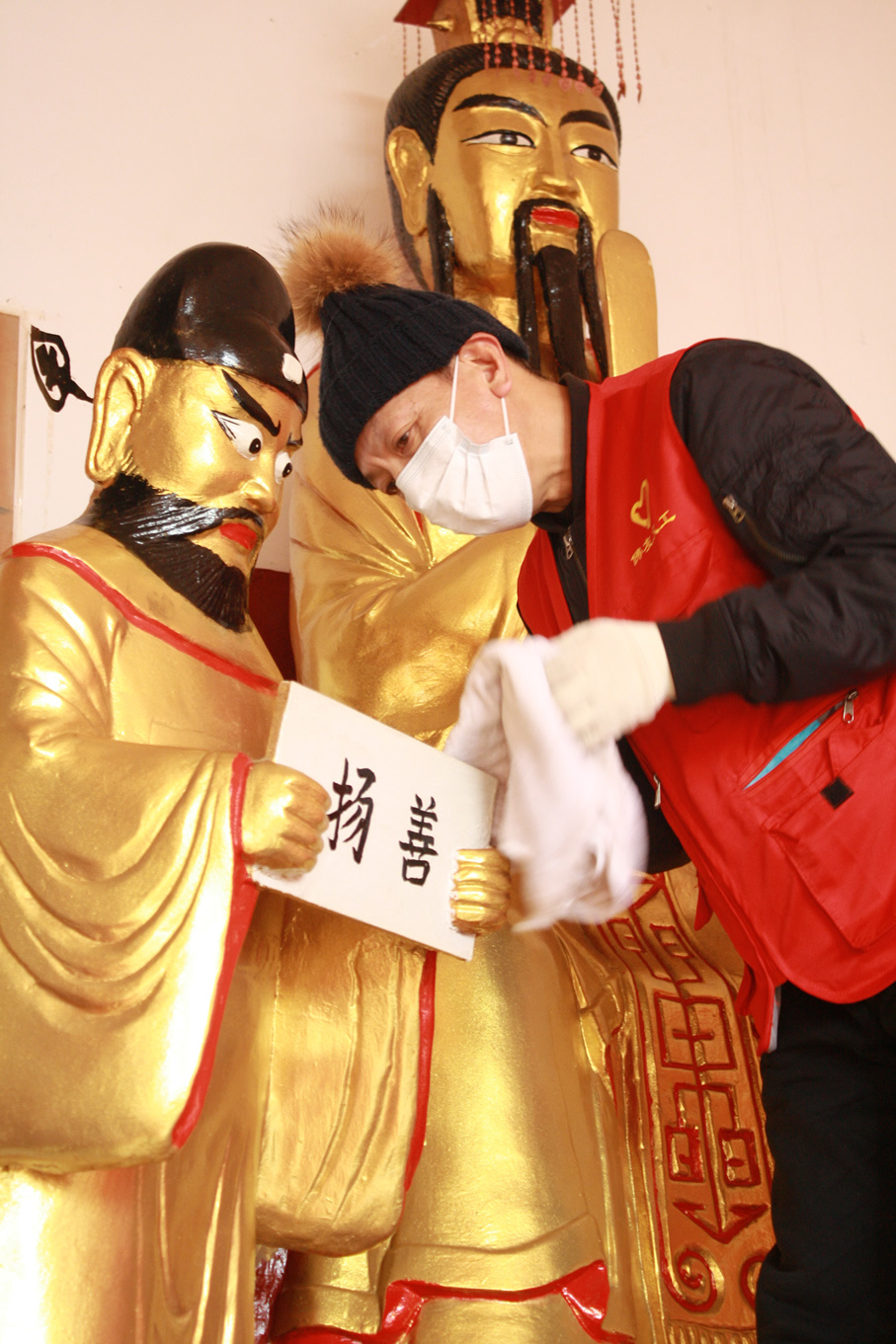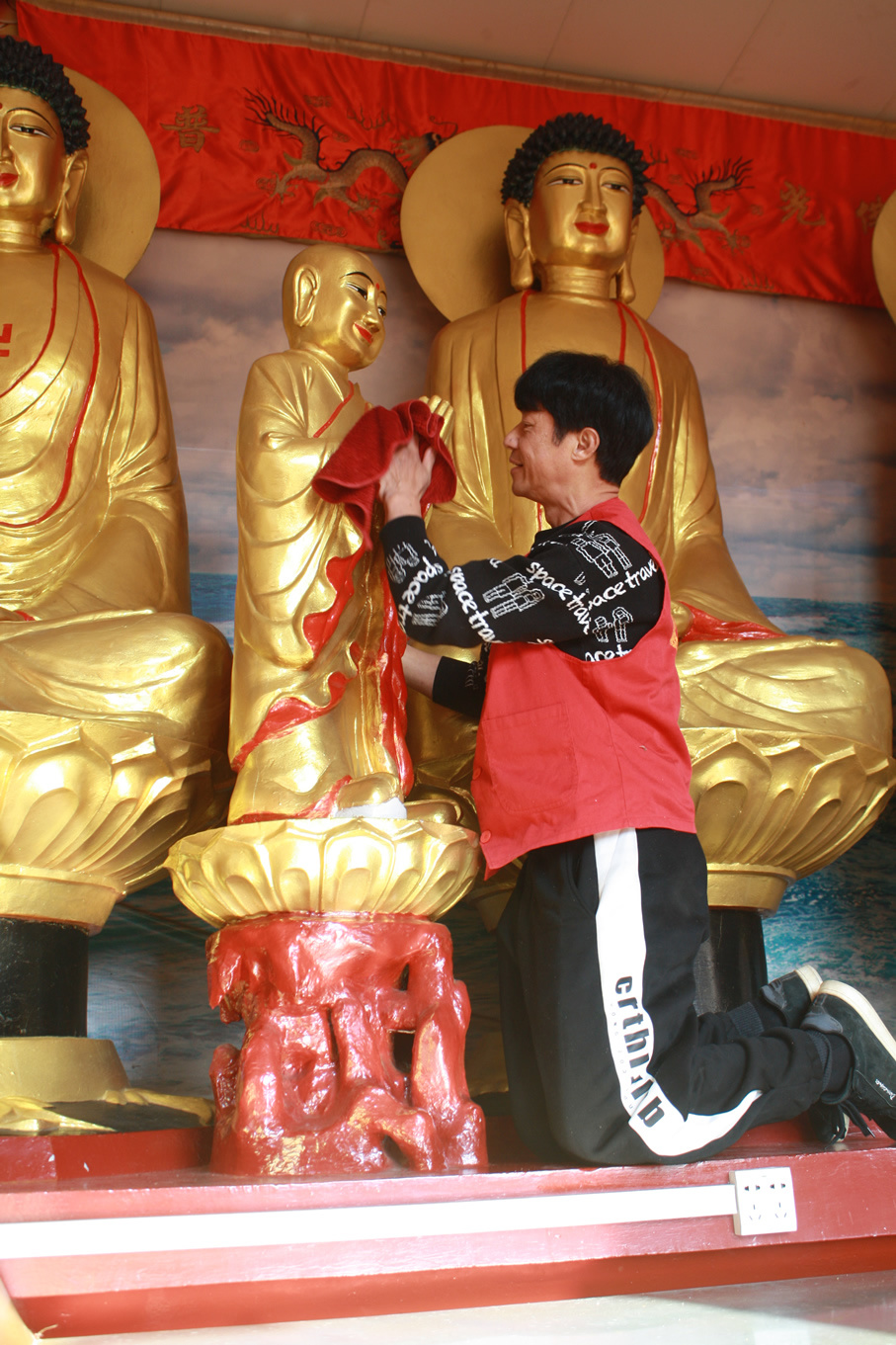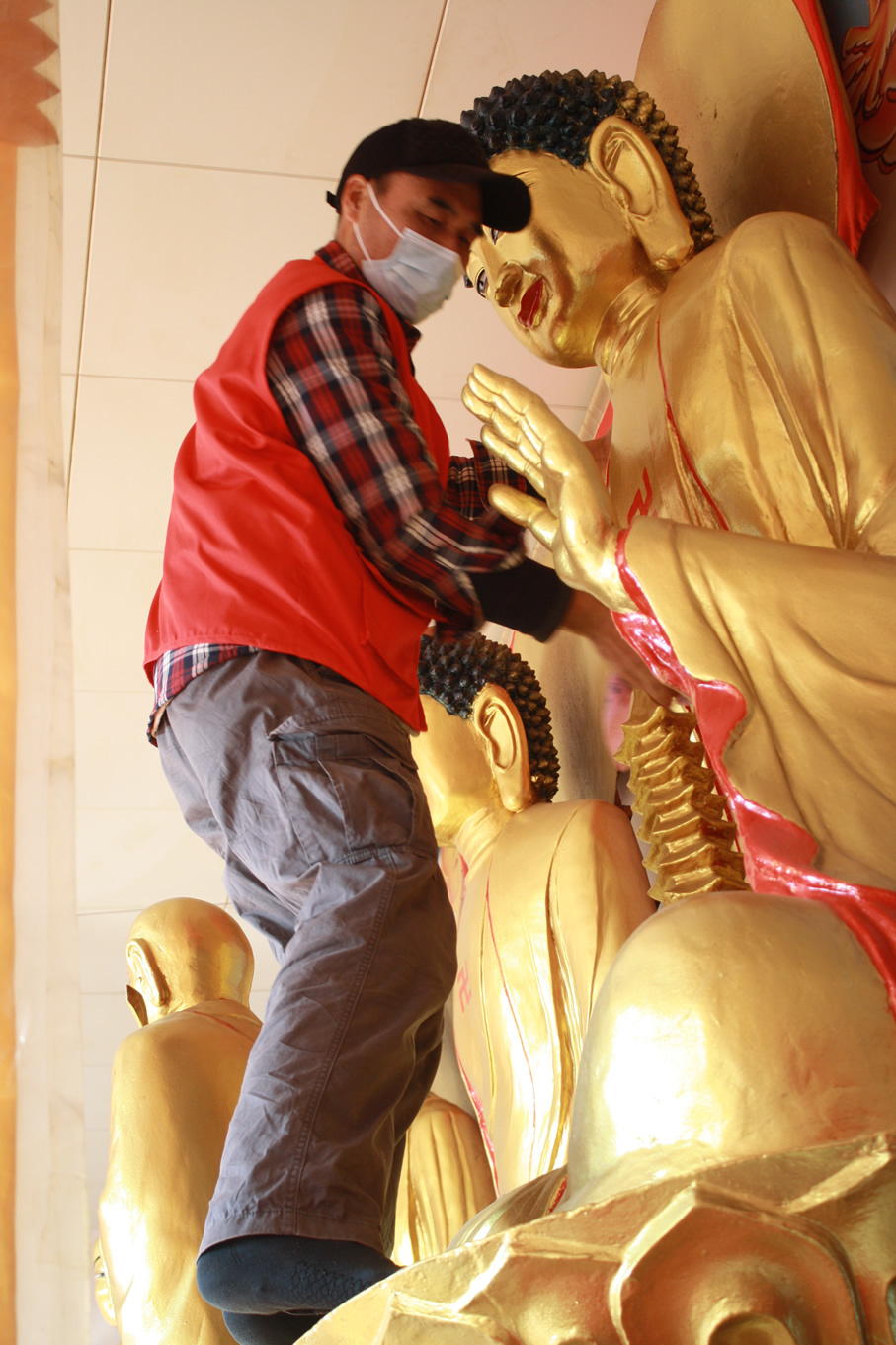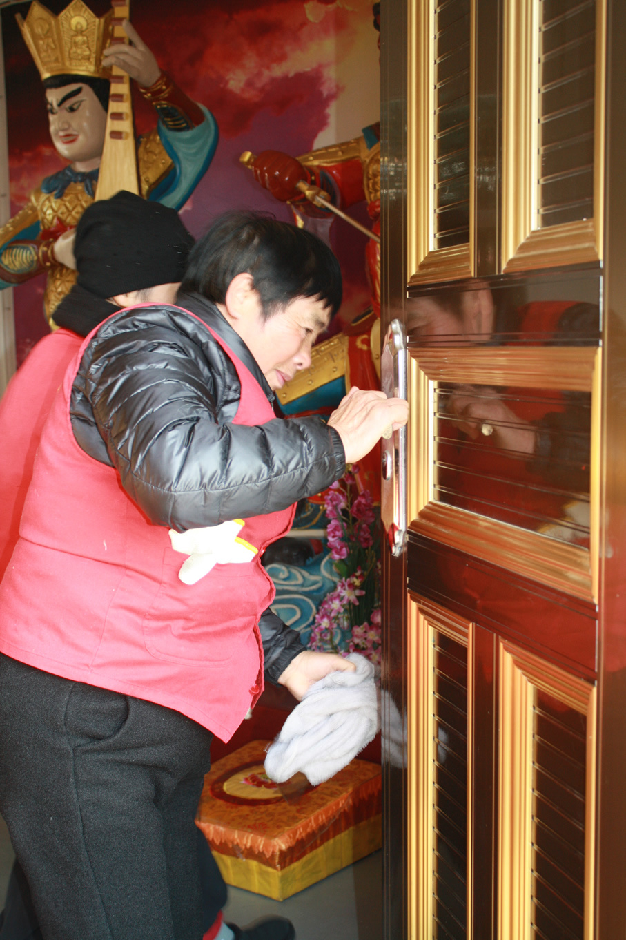 入寺后的工作基本无需太多详细安排,师兄们个个都是轻车熟路:擦佛像的、打水的、搓毛巾的、擦窗的、打扫外围的……大家迅速进入角色。