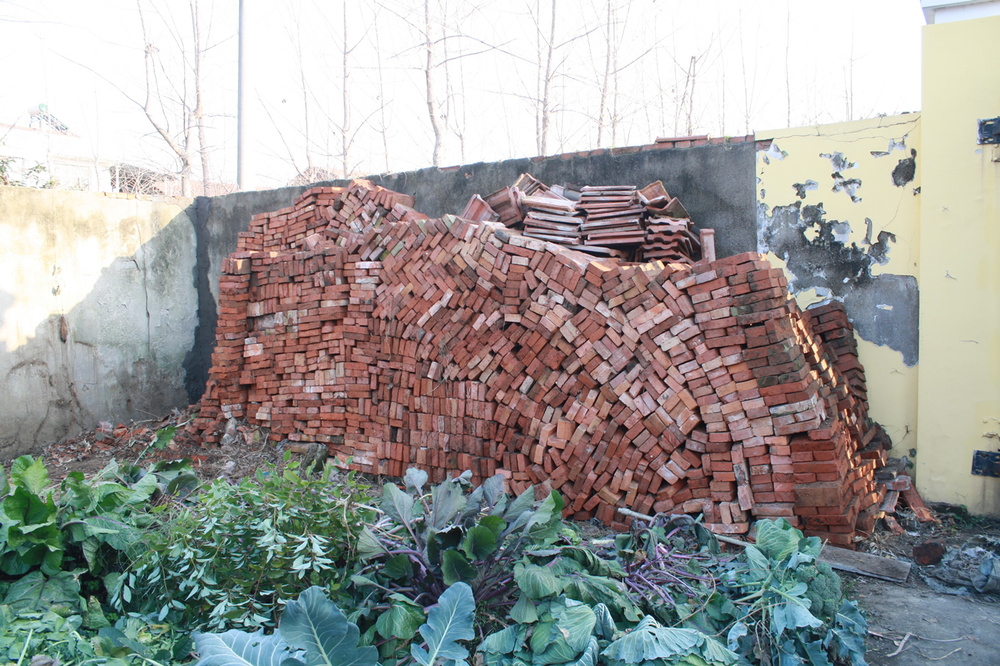 于是师父让我们将那一大堆砖与瓦转移一个边,靠着一边的围墙重新码放