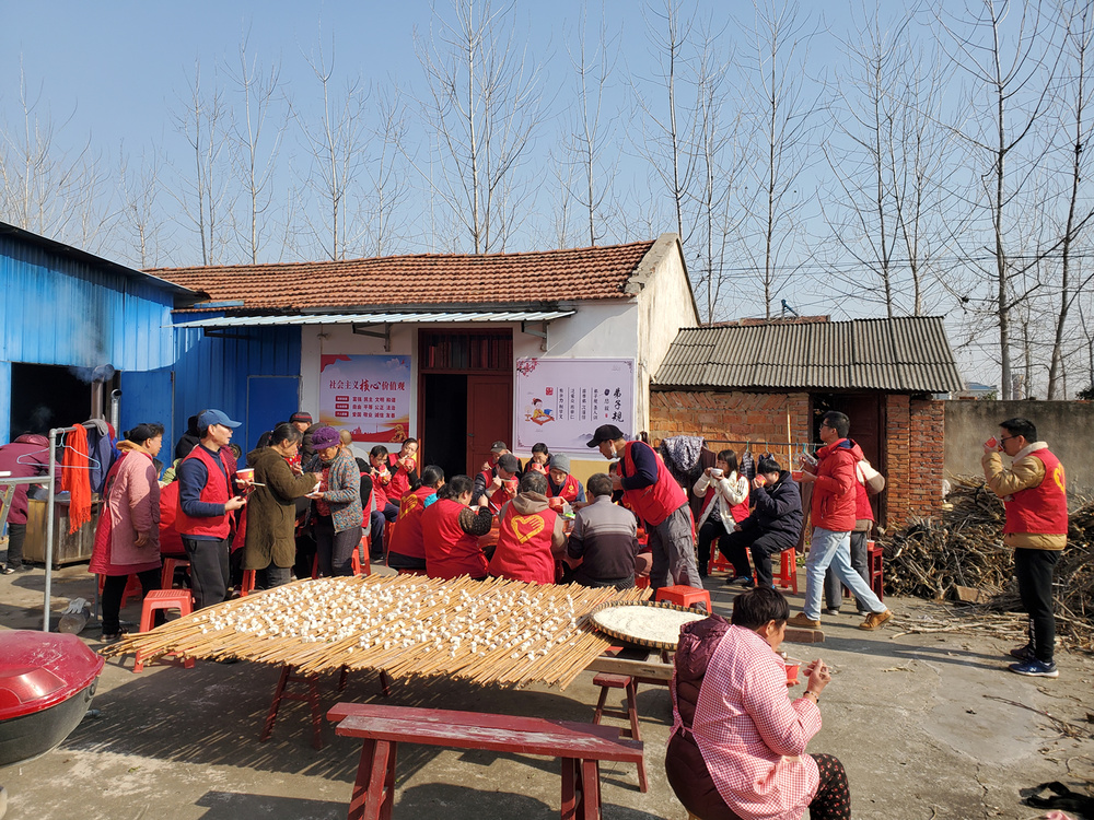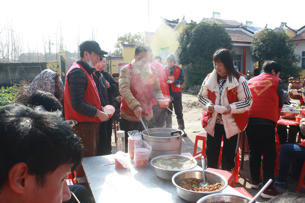 在院子里搭台拼桌,大家随意随机的或围或散的用餐