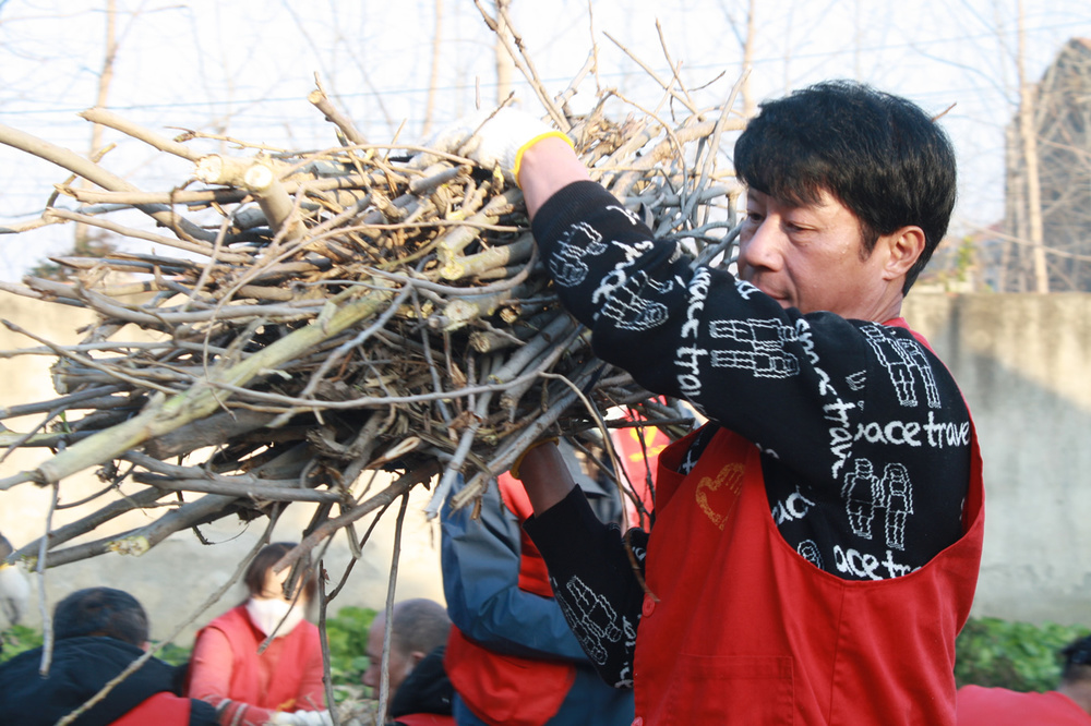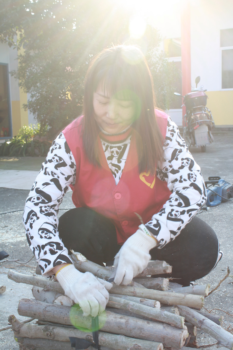 如宝的冬日暖阳下,师兄们自动分配开:搬砖的、外出拖柴的、院内捆柴的,干得那叫一个热火朝天。我随机加入了捆柴的阵营,粗的捡一边等着锯,细的打短用布条捆着摞起来。不一会儿,师父发现了问题:捆得不紧,提过去摞时就有些散了。师父轻声教我们:“捆好后,再用直一些、粗一些的枝条往里塞,就可以把柴垛塞紧,以便以后再搬动。”得了师父这个窍,我便找了个好差事,往已经送过来摞的柴垛里拼命塞。三轮摩托车电瓶车一车一车地来,我们一堆一堆地消灭本来张牙舞爪的树枝。