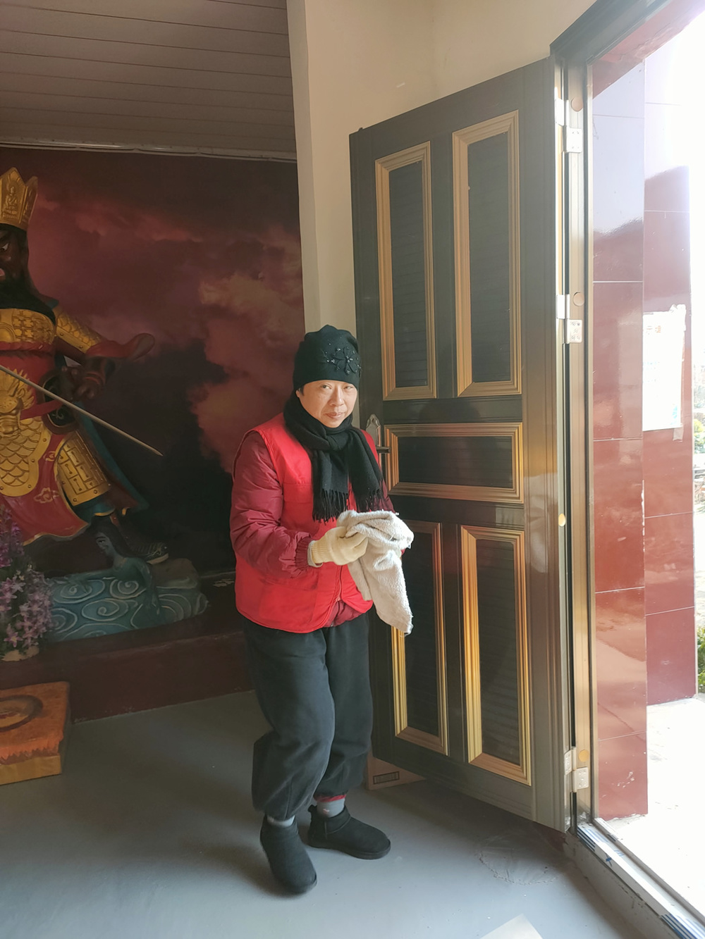 当日寒气凛冽,寺庙地处僻静,生活简朴,师父与护持的居士慈悲,早已为大家起锅烧水,只为大家可以在寺庙清洁过程中少受点冻。