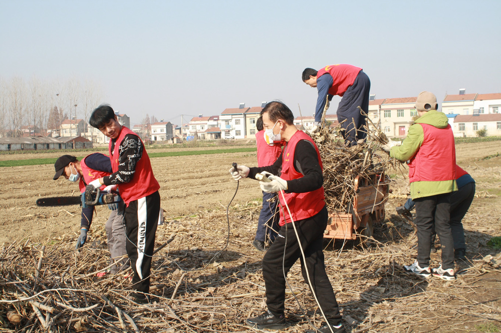 这个分项工程工作量其实是非常大的,砍刀手、电锯手、拾柴手、捆扎手、搬运手....