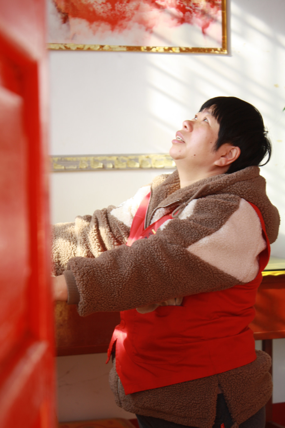 特别喜欢听师兄们聊天,坐车时聊,干活也不会闲着,大家都是一片善意,话里话外都是朝着好的、善的、佛法的方向,自然就相处得怡然自得。我找了个没人的窗户擦起木格上的灰来,阳光正好晒着背,舒服又惬意。一位师兄给我搬来一架木梯,但我因为有些恐高,正迟疑着要不要上,却又忽然不知哪里来的力量,揣着一些怯意上了梯子,不放心的又留了一步不上顶。下面师兄说:“腿分开站吧,高一些,我扶着你”。“呃,好吧”,我不想被师兄看出我的尴尬。