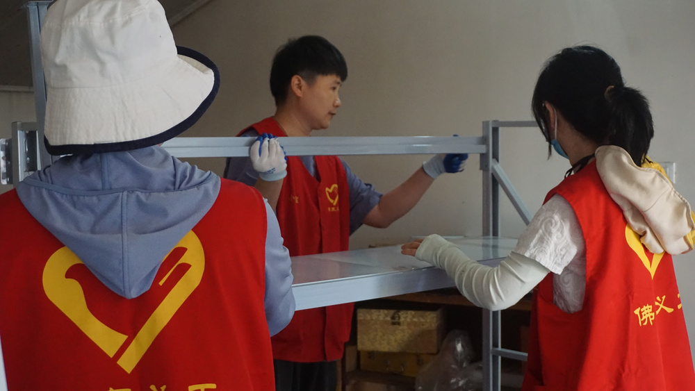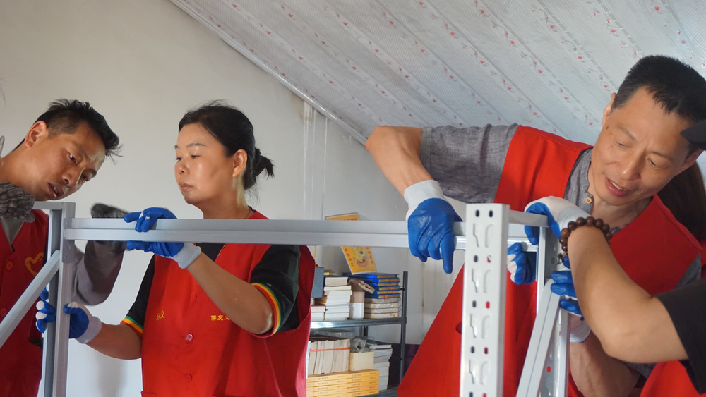 这楼上的货架安装、经书整理、杂物清理上架等