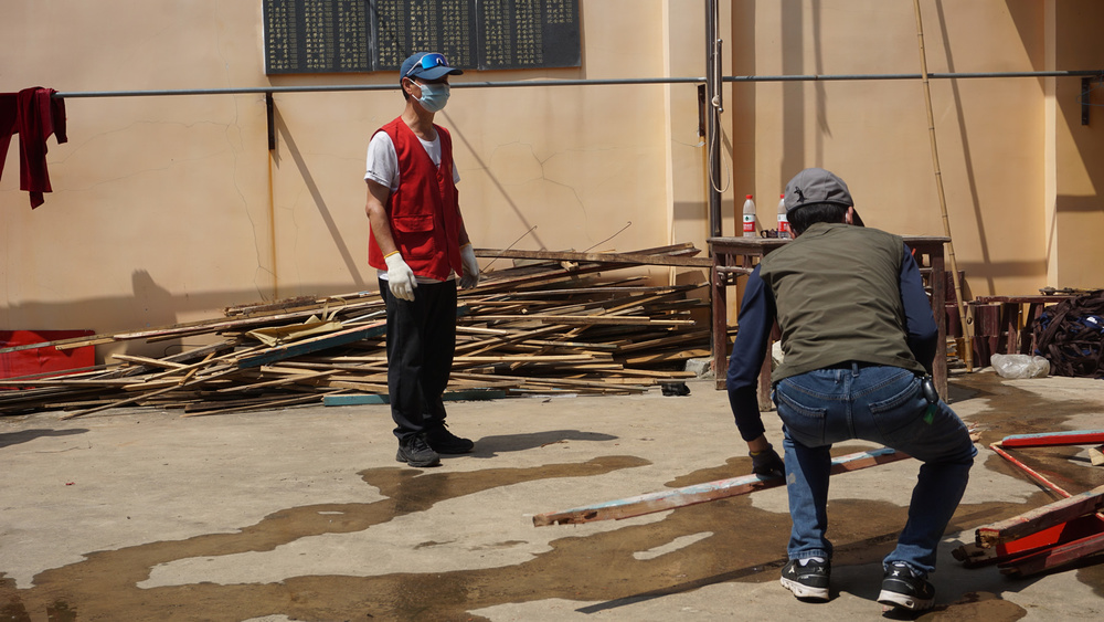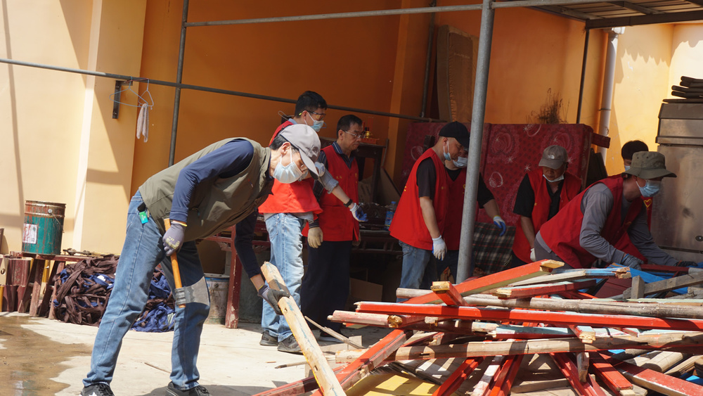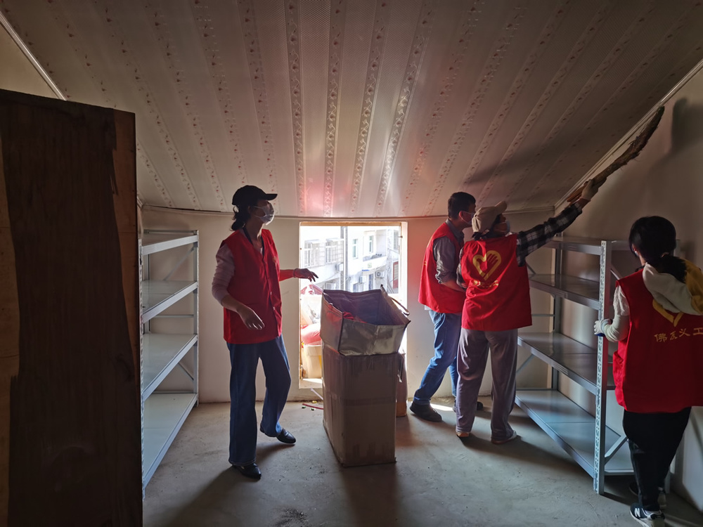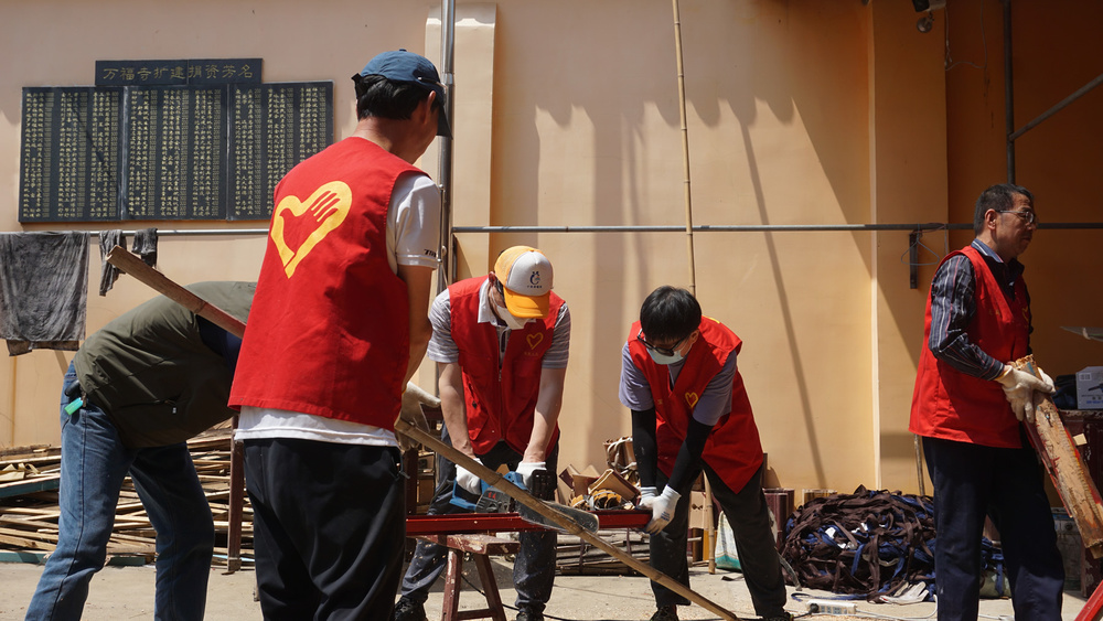 4月初,我们义工群服务团队的部分师兄,先到万福寺来了一趟,对寺院需要做的一些事务进行了实地了解与勘察,为安放经书,提出购置带门的书柜;为安置楼上诸多杂物,提出购置一批物架;了解了锯木为柴的体量。