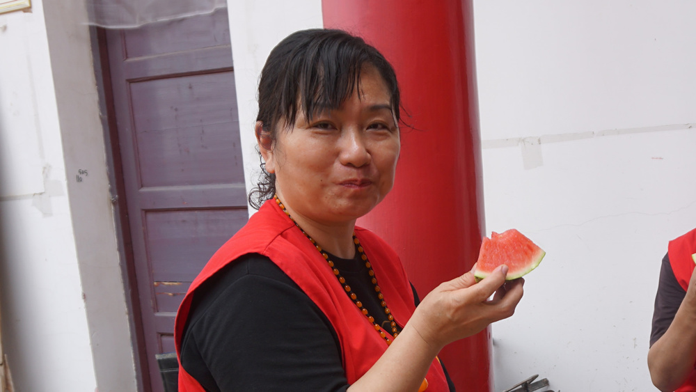 好啦,该上西瓜了的。寺院给我们准备了盐汽水,还有甜口的西瓜---2024年的第一口瓜