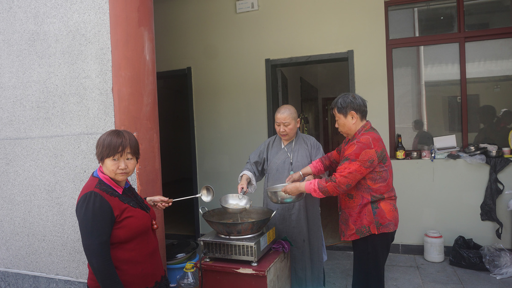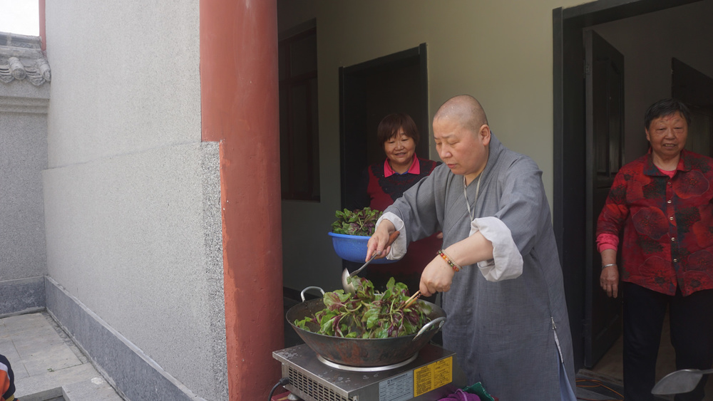 明修师父因陋就简地用电磁炉给大家准备了可口的午斋