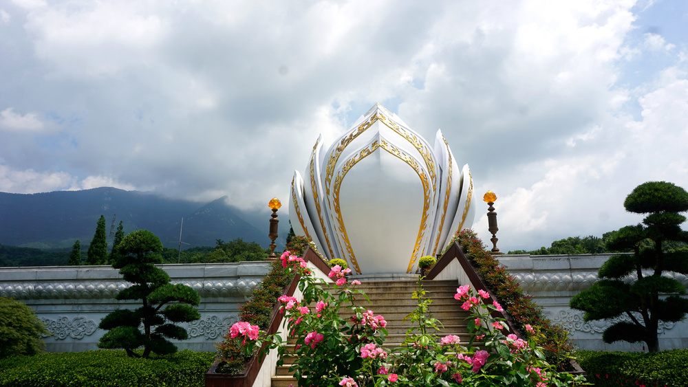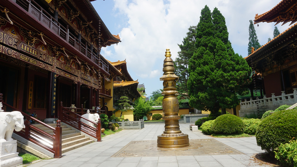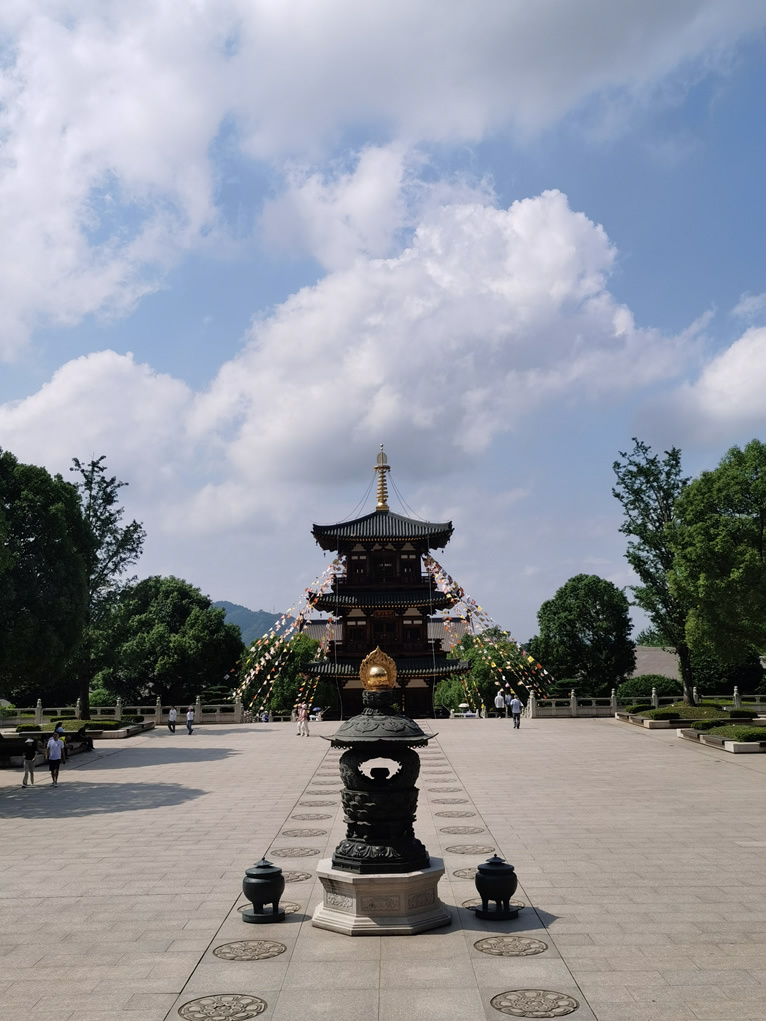 东林寺大殿后山上正在修建高塔(闻说是华严塔)