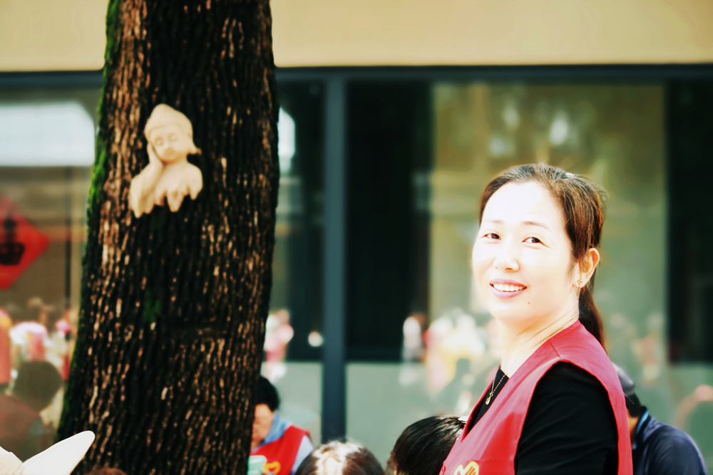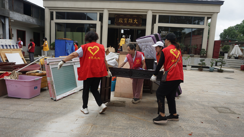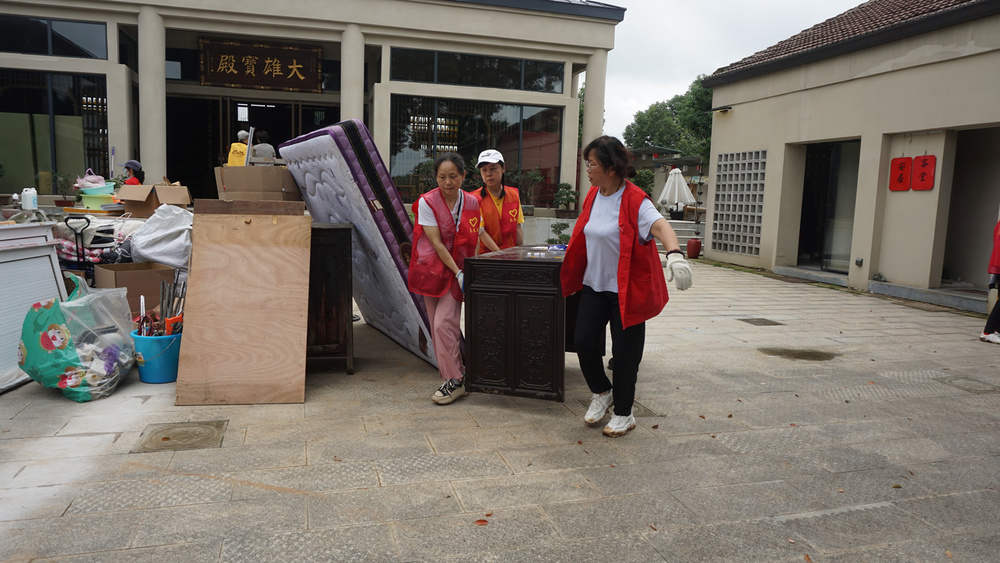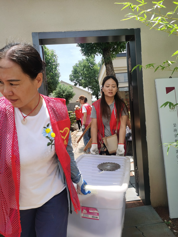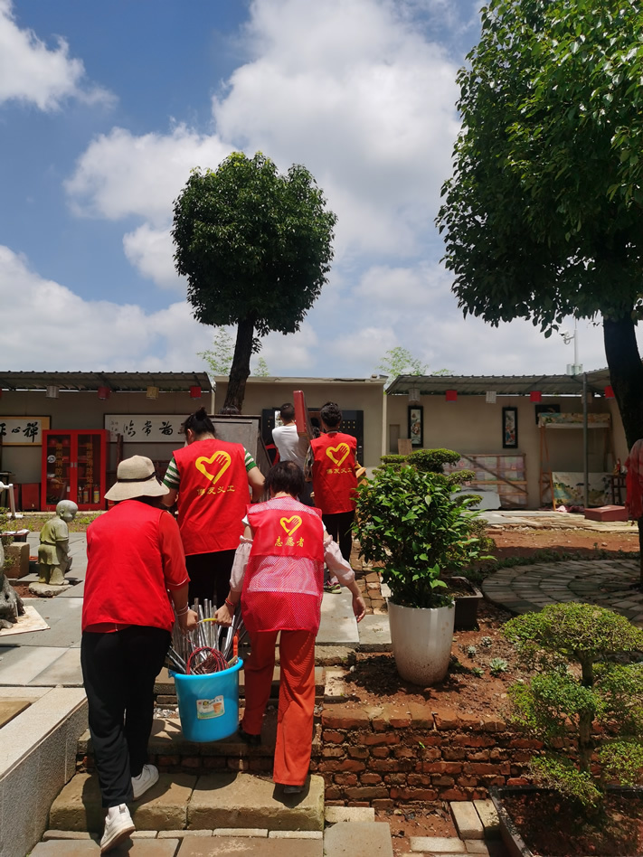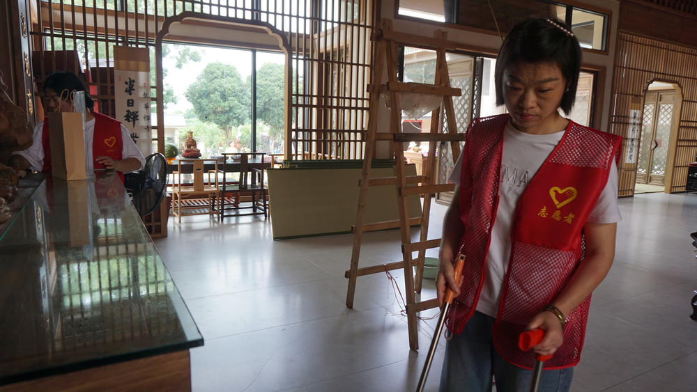 参加大殿清扫小组的,有不少都是第一来参加义工活动的义工,我也有些特意安排她们来打扫大殿,一则相对室外搬运之活没那么累与晒,二则在大殿做事清洁佛像等,更能体味到我们佛友义工的特征。
