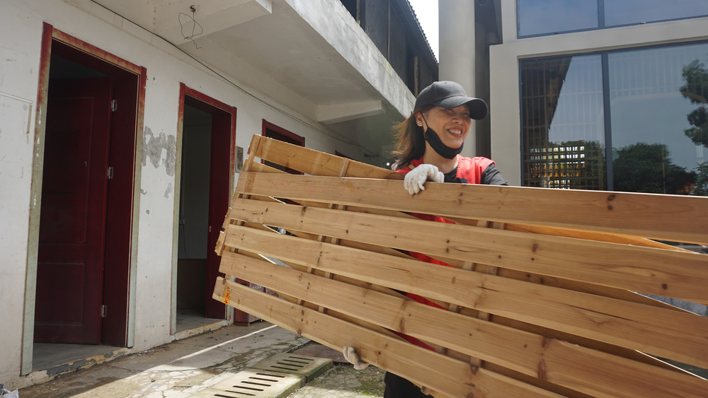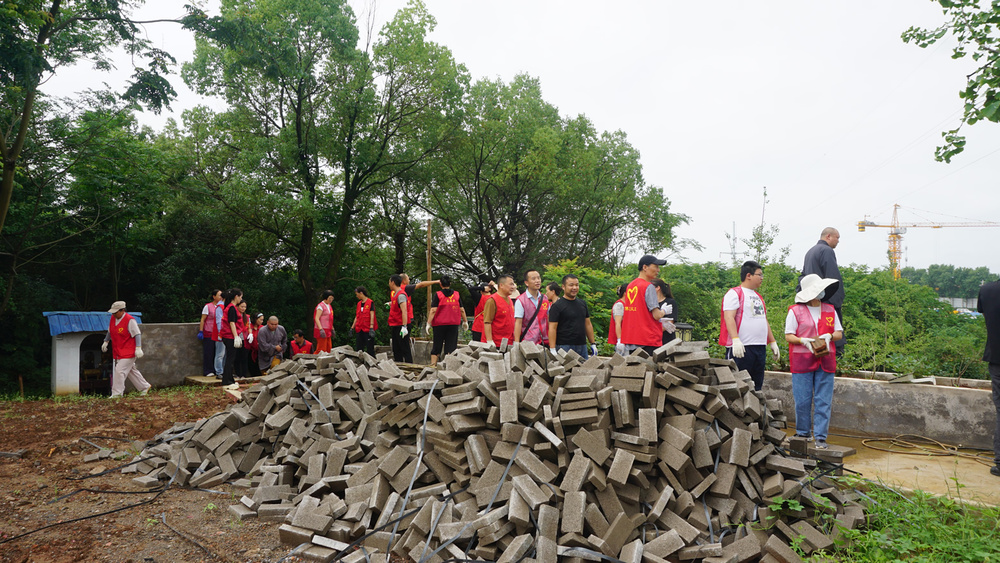 多日的雨水让道路积水泥泞,我们就地取材铺砖成路~~ 开干!
