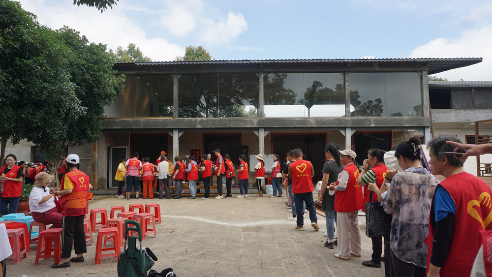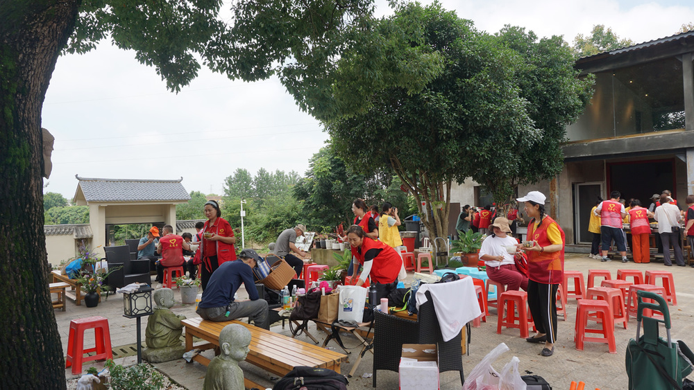 路边村民忽然看到这许多穿一样衣服的队伍走来走过,一时疑惑,我却是大声地给予解答:”我们是去庙里做事的啊!”