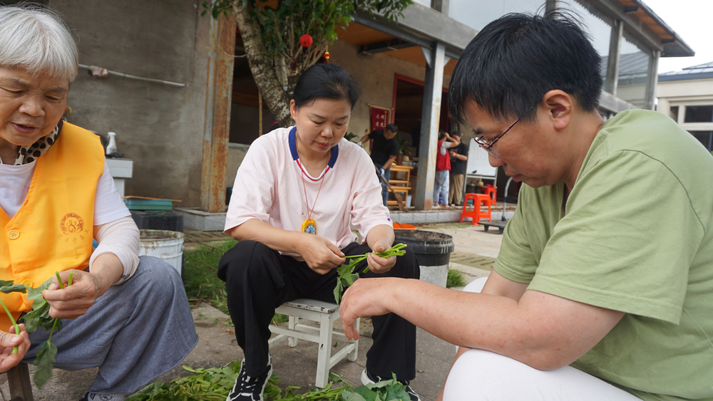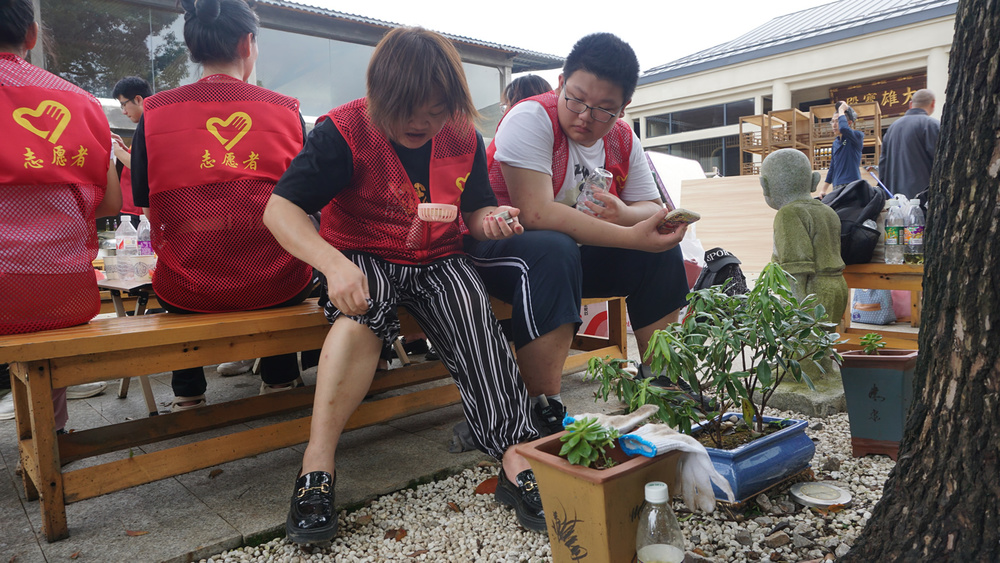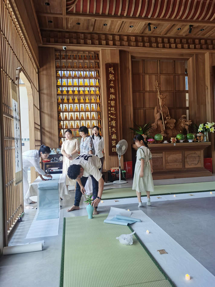 为下午禅茶会做准备工作中的师兄们