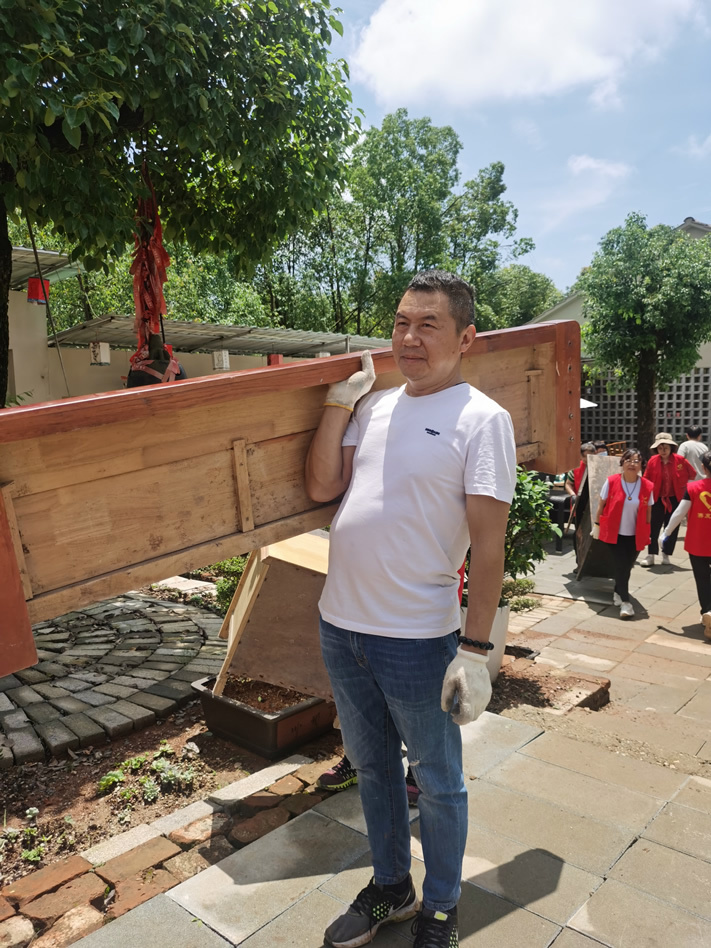 看~~ 这个小伙子,应该是第一次来参加我们的义工活动,在“老义工”的带领下,一趟接一趟,不言不语,干劲十足。