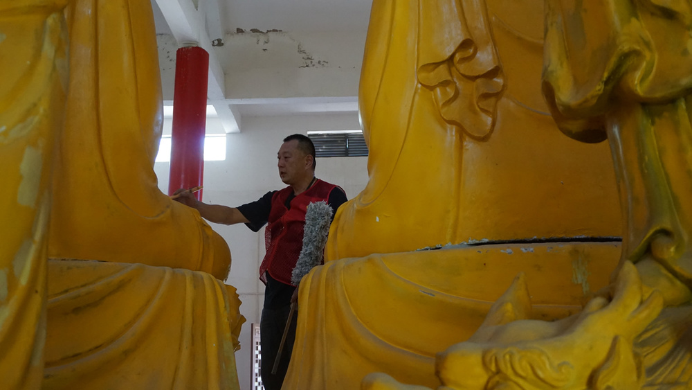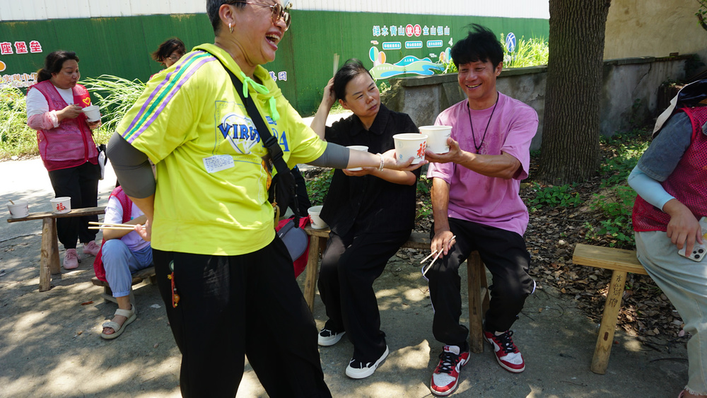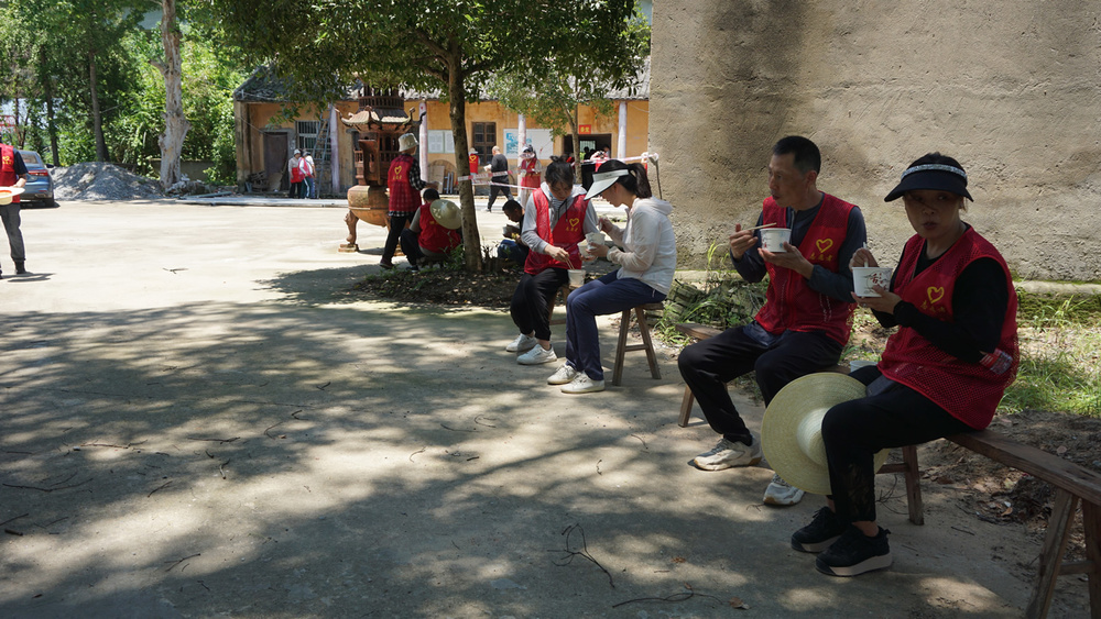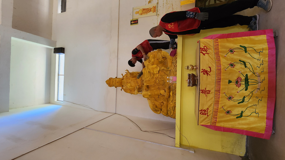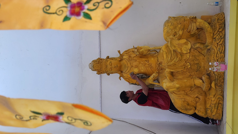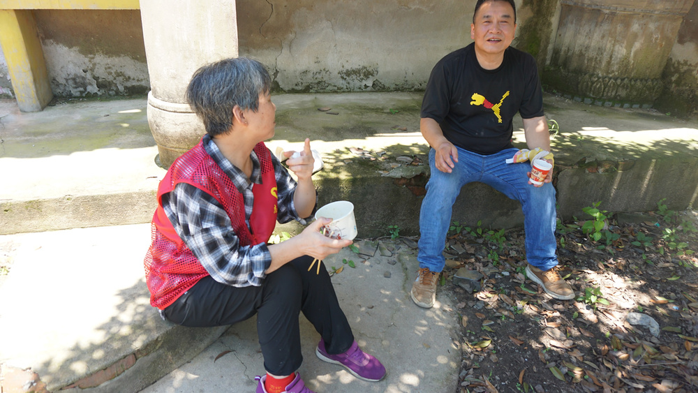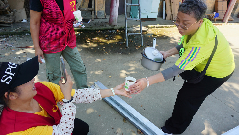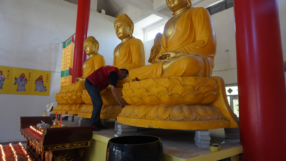 师父带大众捻香、上供后、上午的劳动暂告一段落