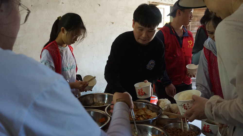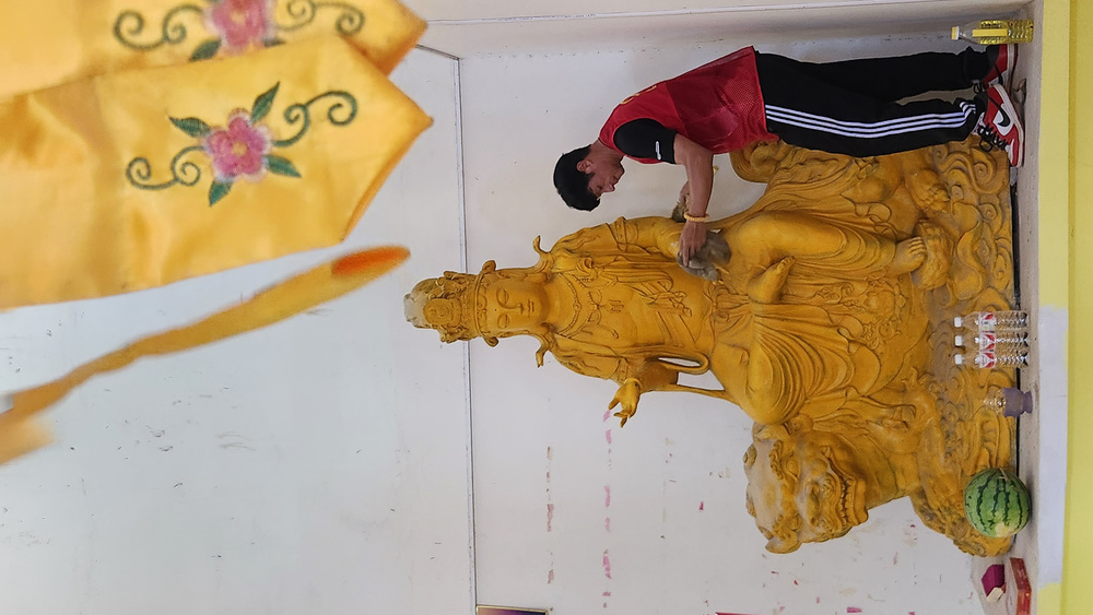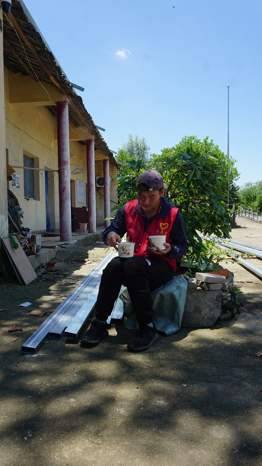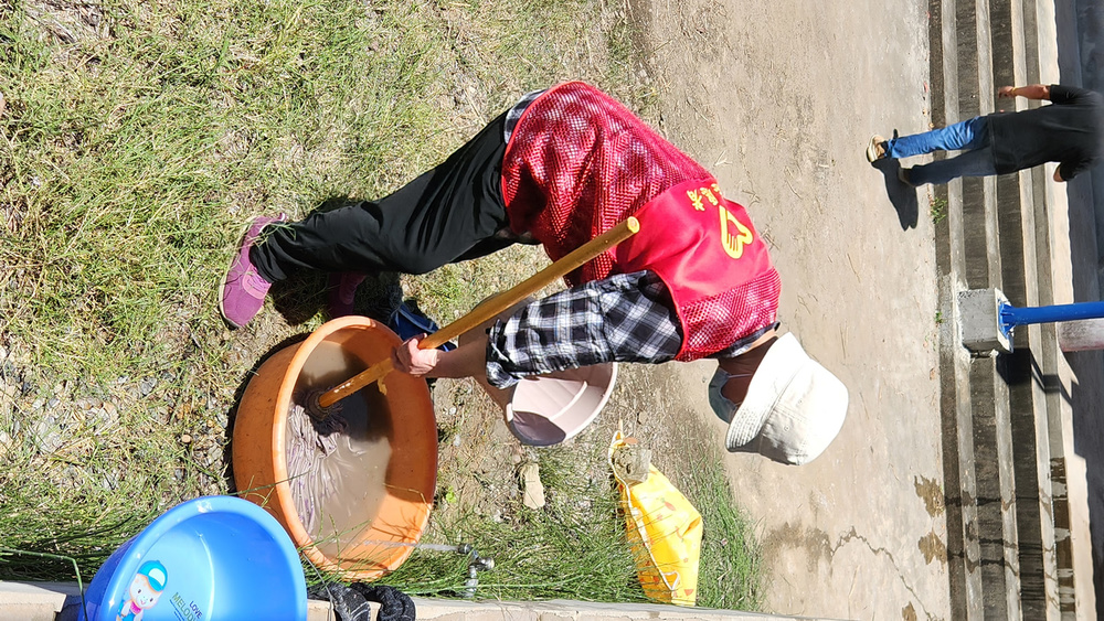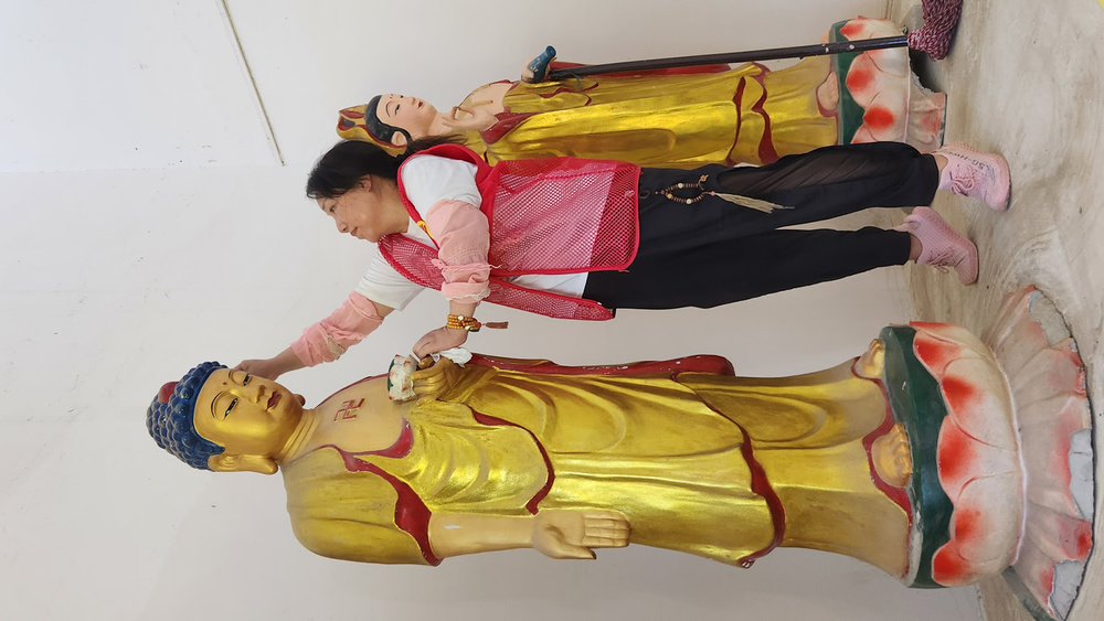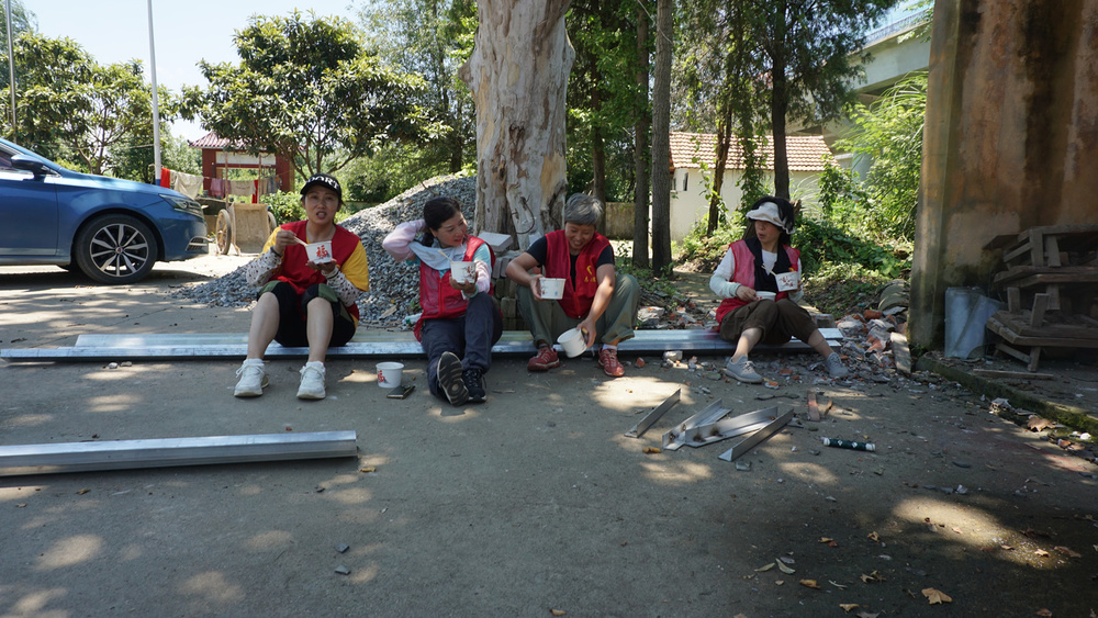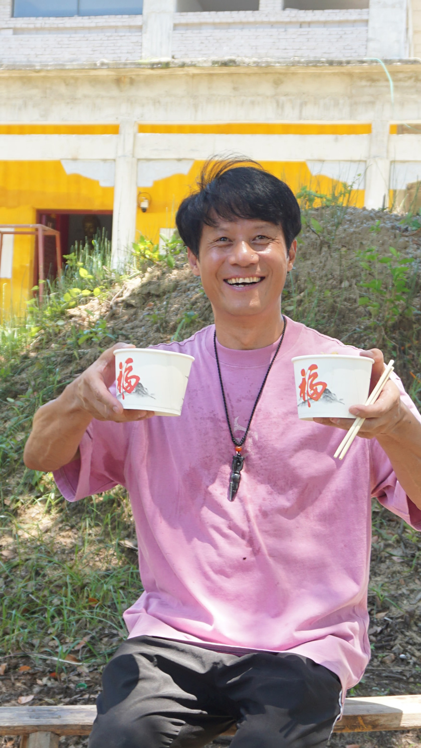 师父带大众捻香、上供后、上午的劳动暂告一段落