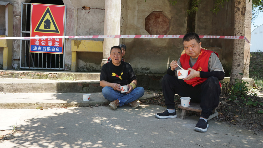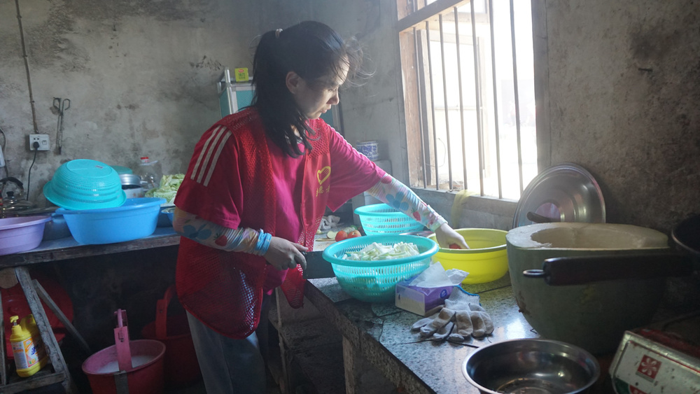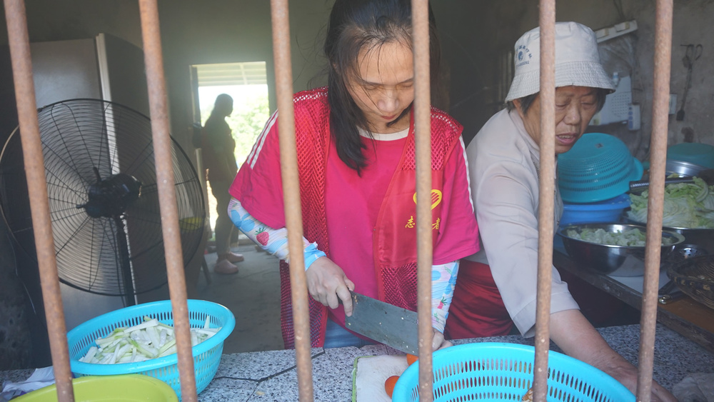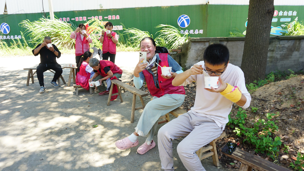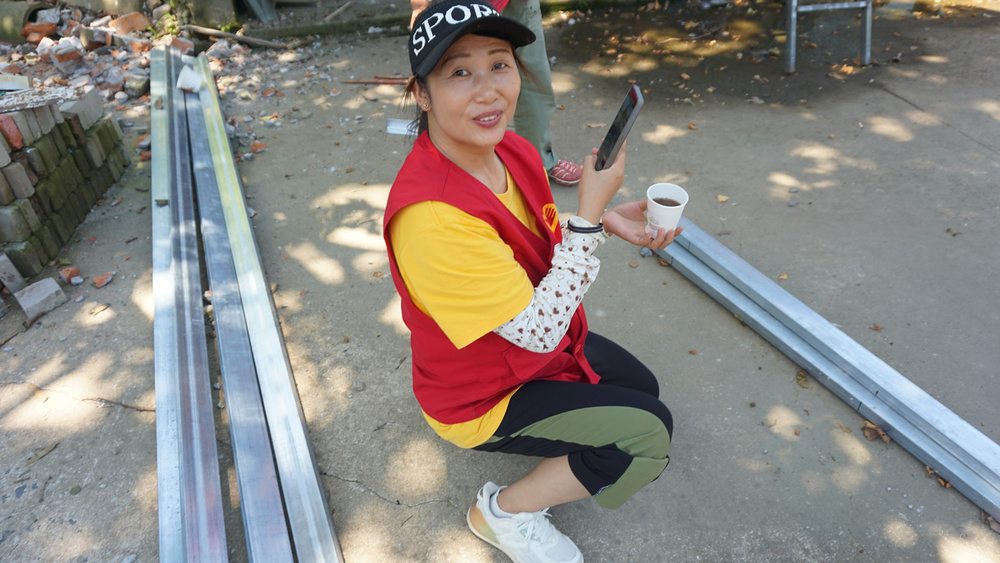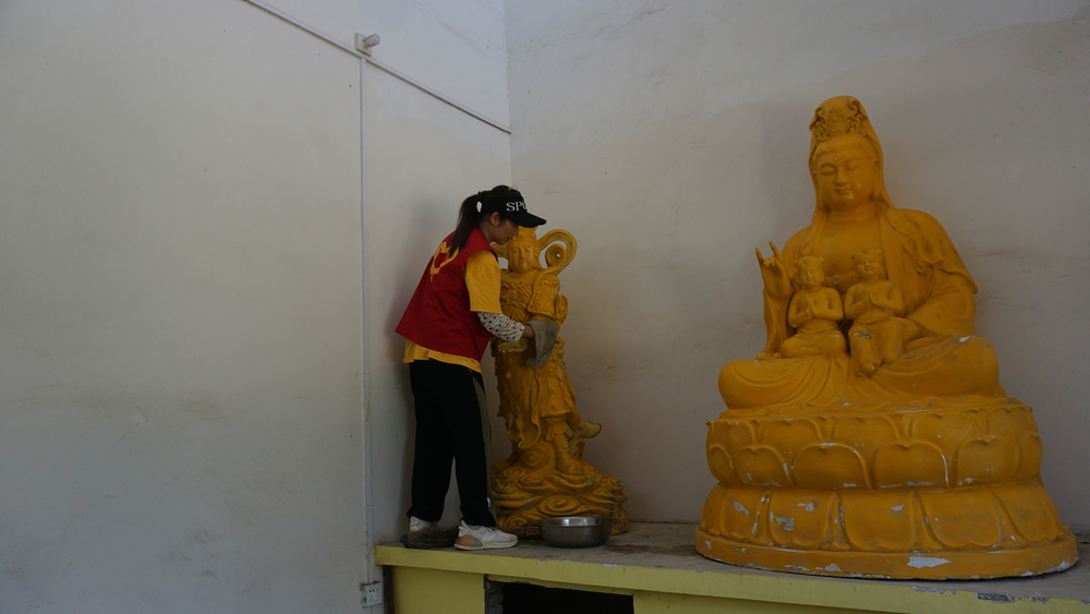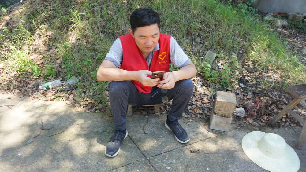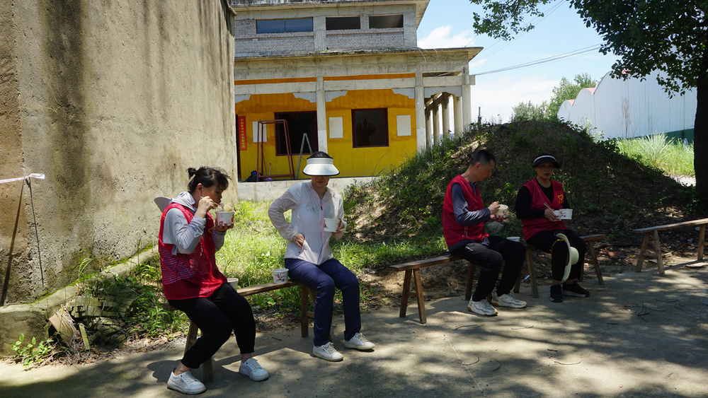 师父带大众捻香、上供后、上午的劳动暂告一段落