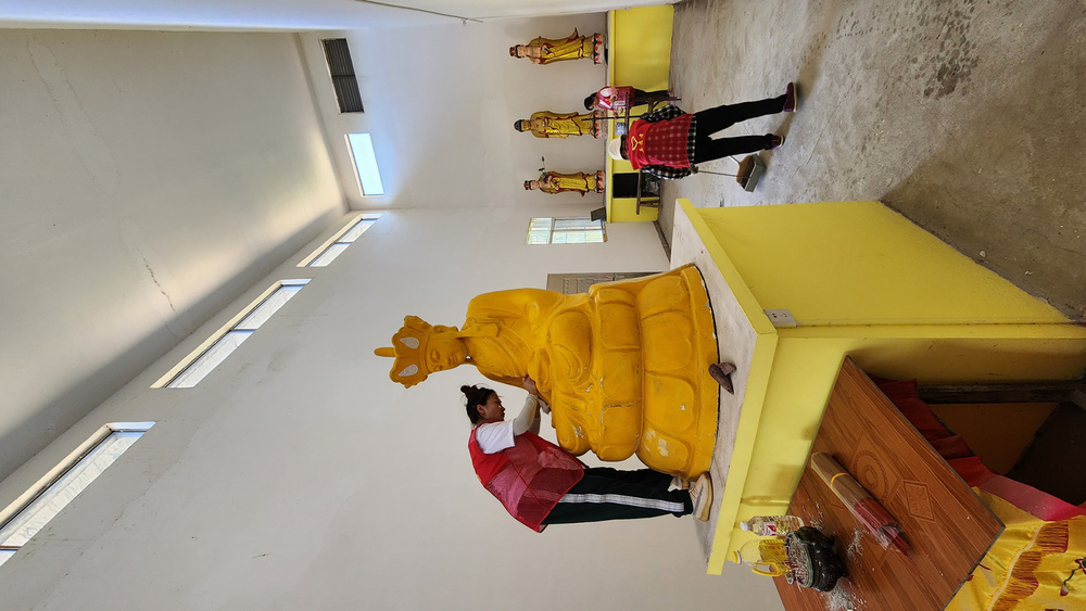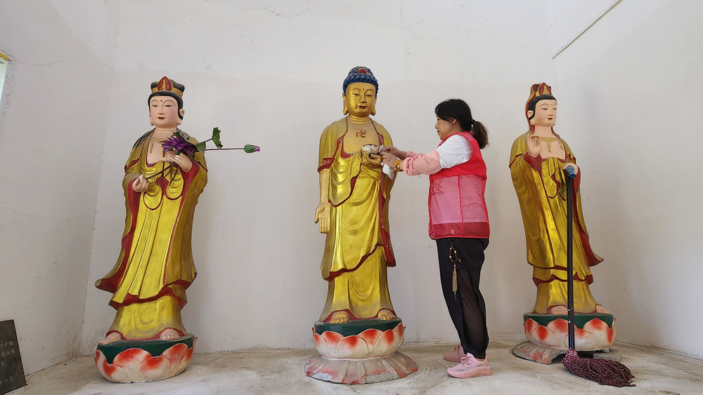 大殿后面廊道所堆杂草,估计好些多年了也未用之,可想得以后若干年也烧之不得