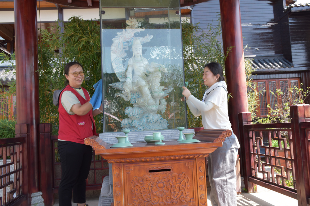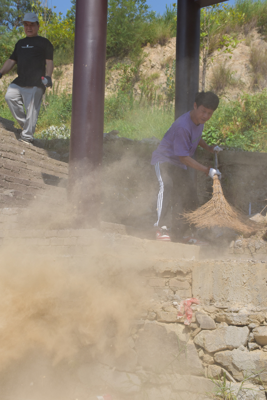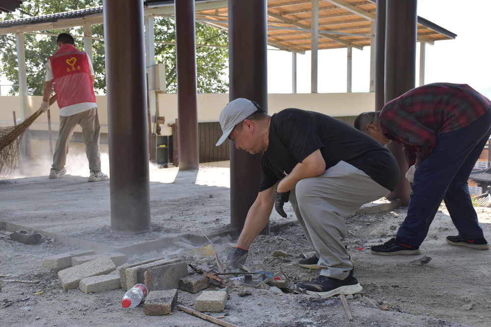 时间来到下午14时之后,主要仅剩下大殿东侧长廊的收拾清理之事