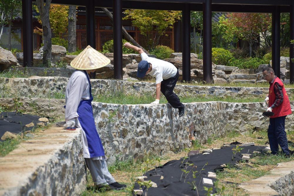 一堆太湖石(破碎了的),挪个位置暂放待日后有合适处再做拼接造形,仗我们人多,三下五除二就定了