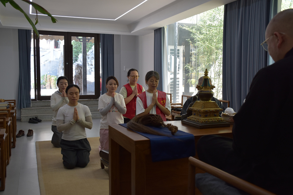下午14点要举行授三皈依仪轨,我们数位师兄紧急前去帮忙收拾道场为庄严故