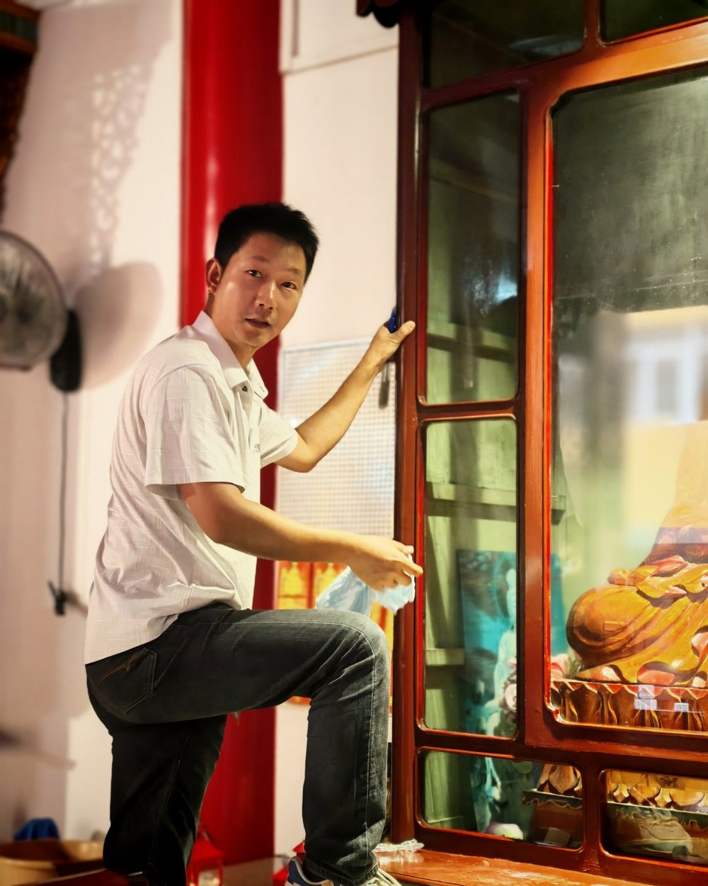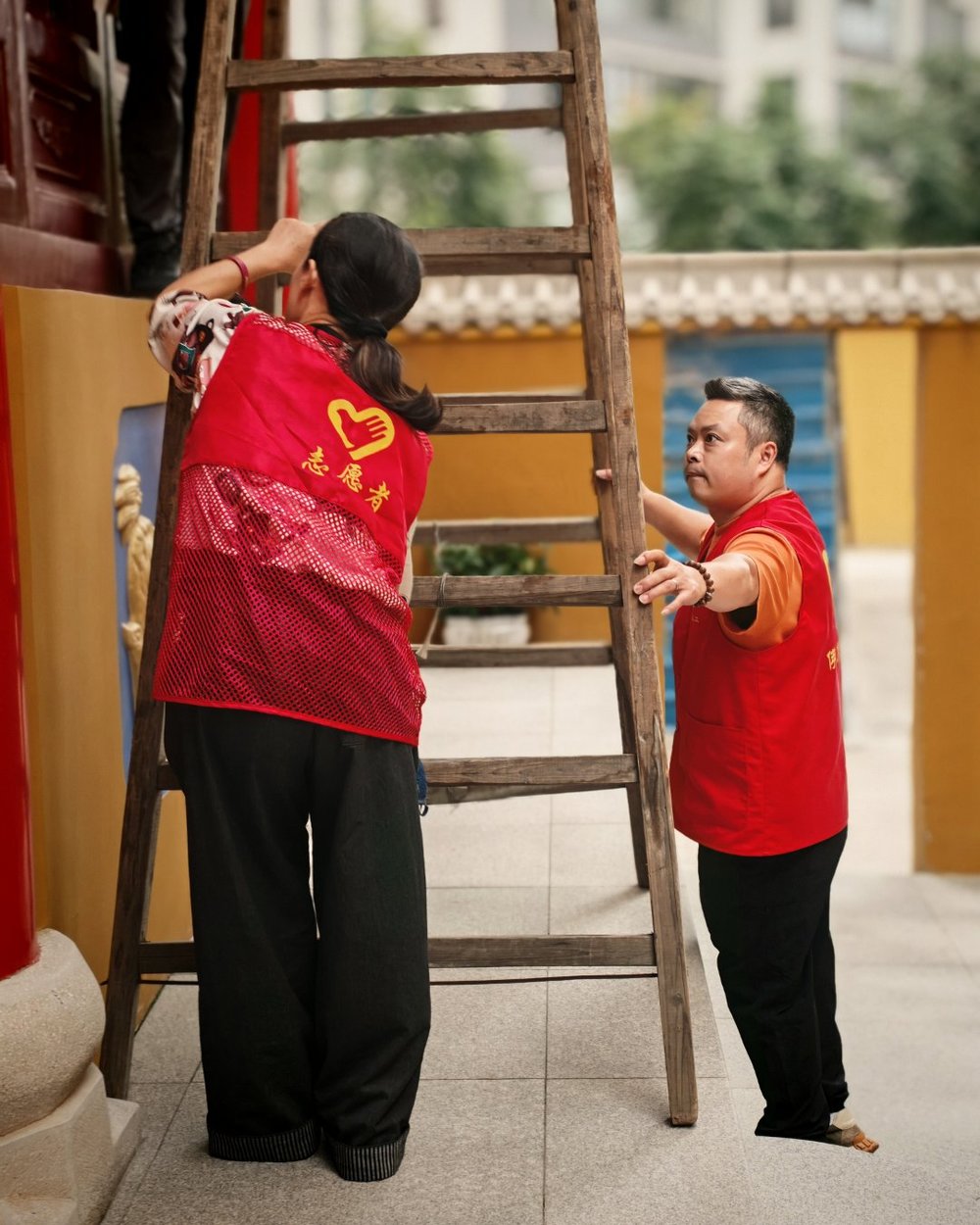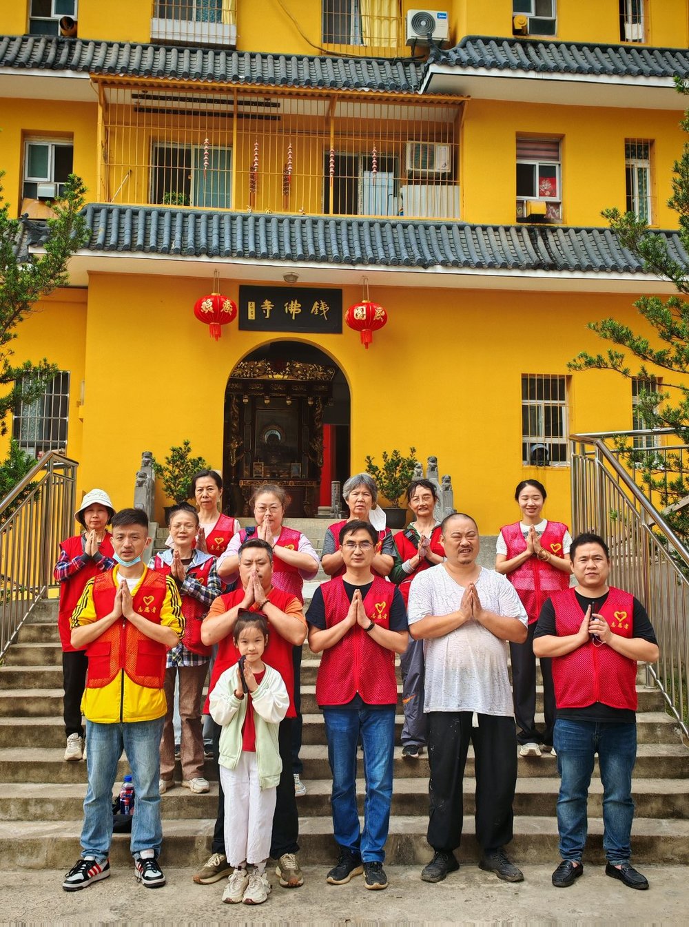 第一批次负责大殿、斋堂、厨房、财神殿等处清洁卫生的师兄们,大功告成完成全部,后面还有一批在挖土平整场地的师兄却还在忙活中,于是我就让先拍一波合影,然后诸位好离去各自回家却忙别的去了的