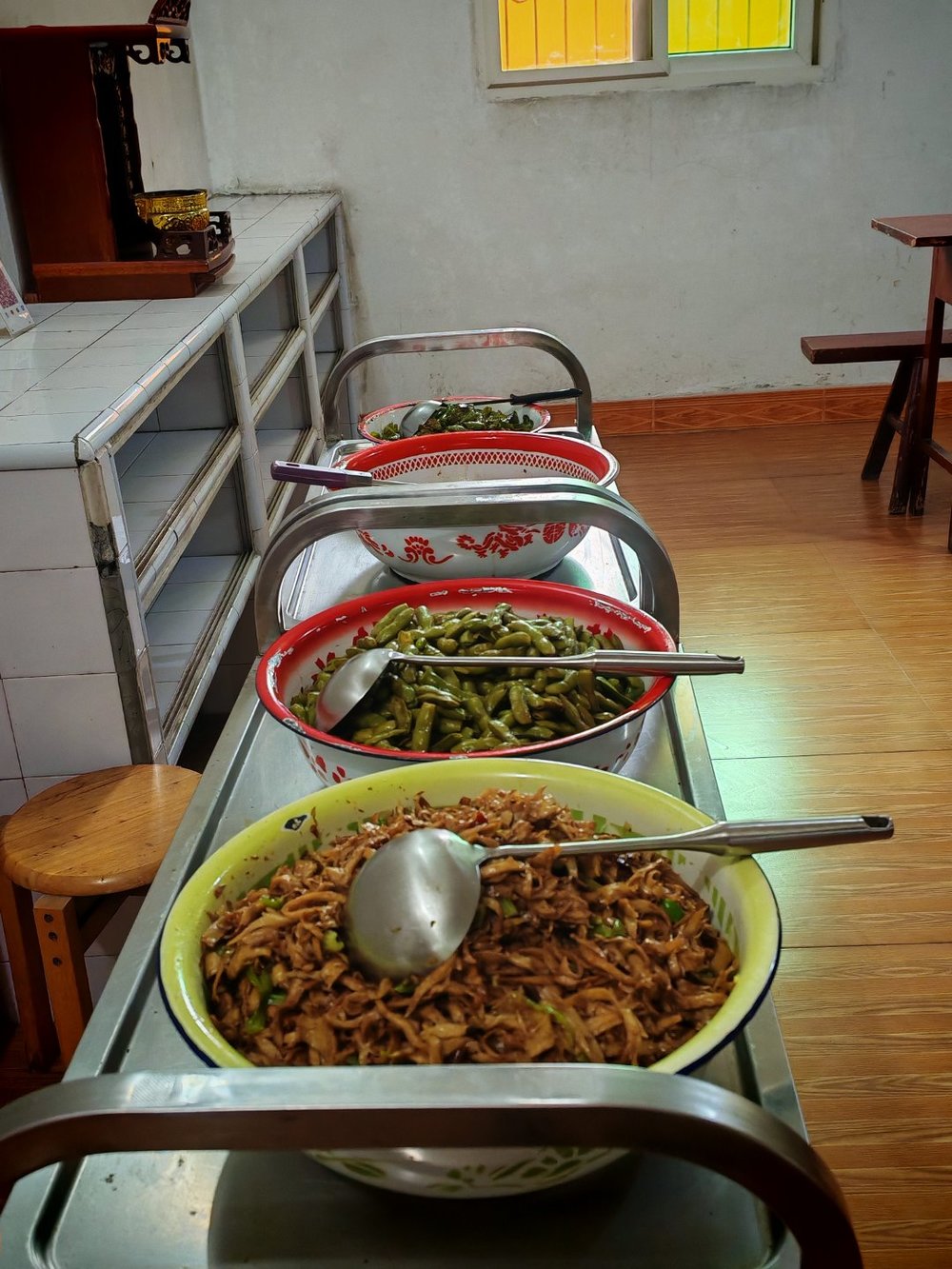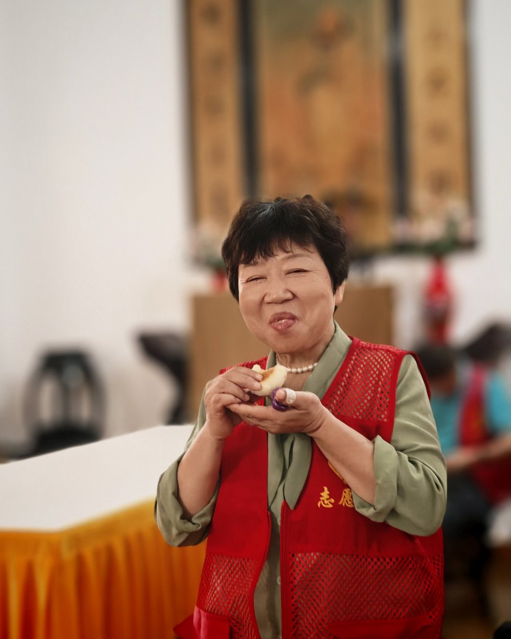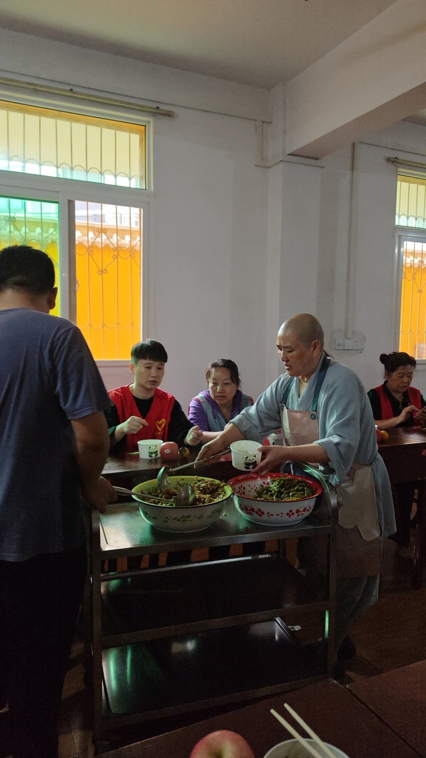 是次义工活动我们共来了47人,在斋堂用餐的有45人,寺院给我们准备了丰盛的午斋,当家师父亲身给我们巡堂,吃不完,根本吃不完[愉快]