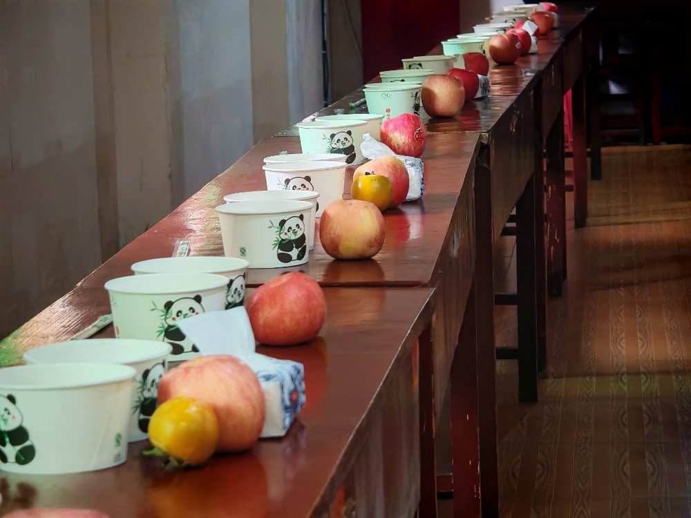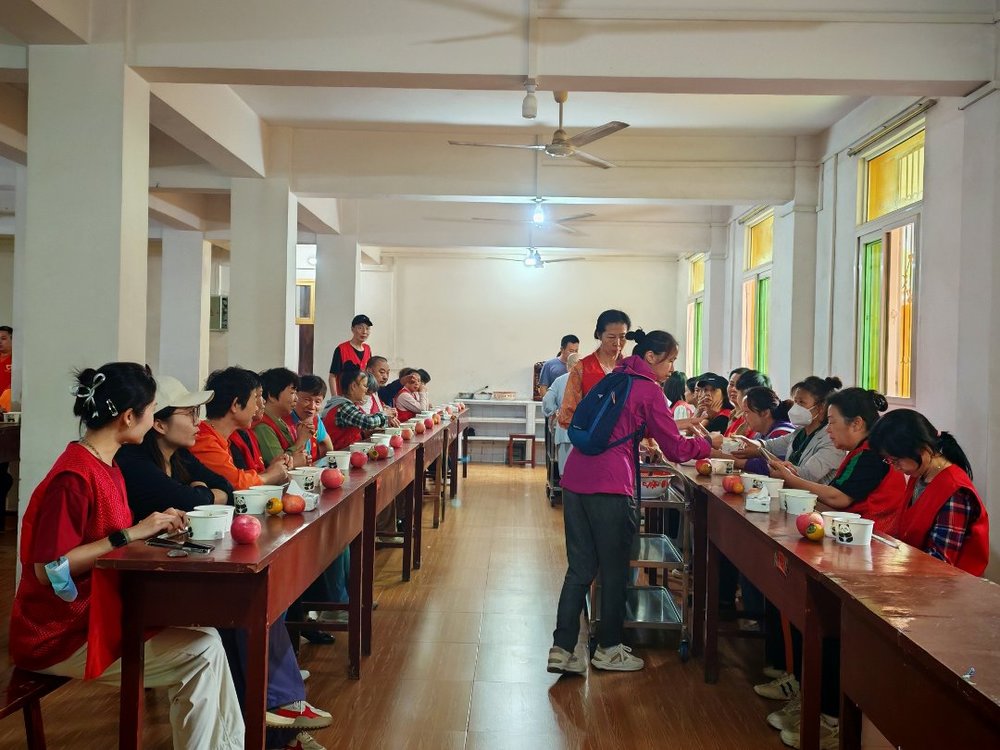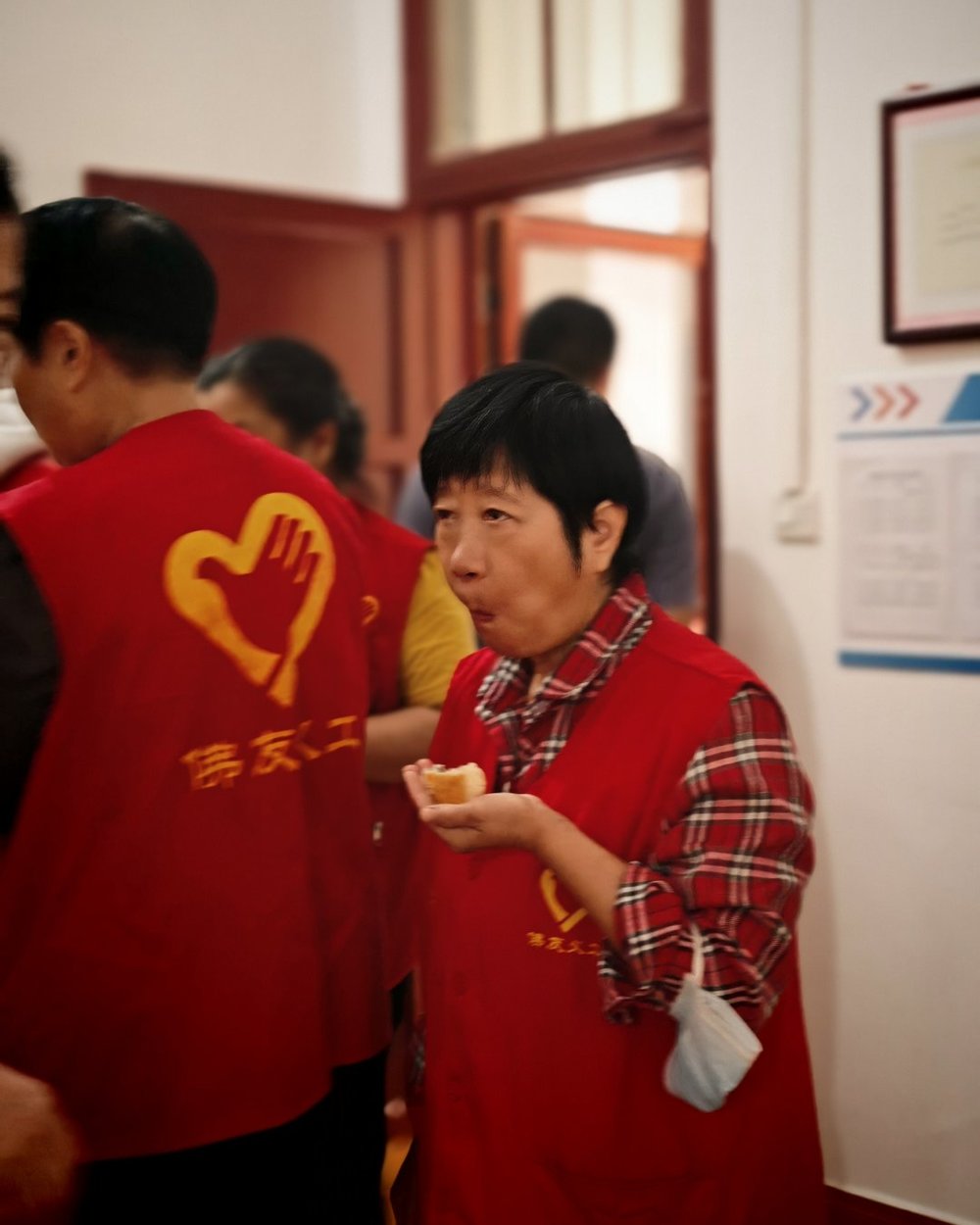 是次义工活动我们共来了47人,在斋堂用餐的有45人,寺院给我们准备了丰盛的午斋,当家师父亲身给我们巡堂,吃不完,根本吃不完[愉快]