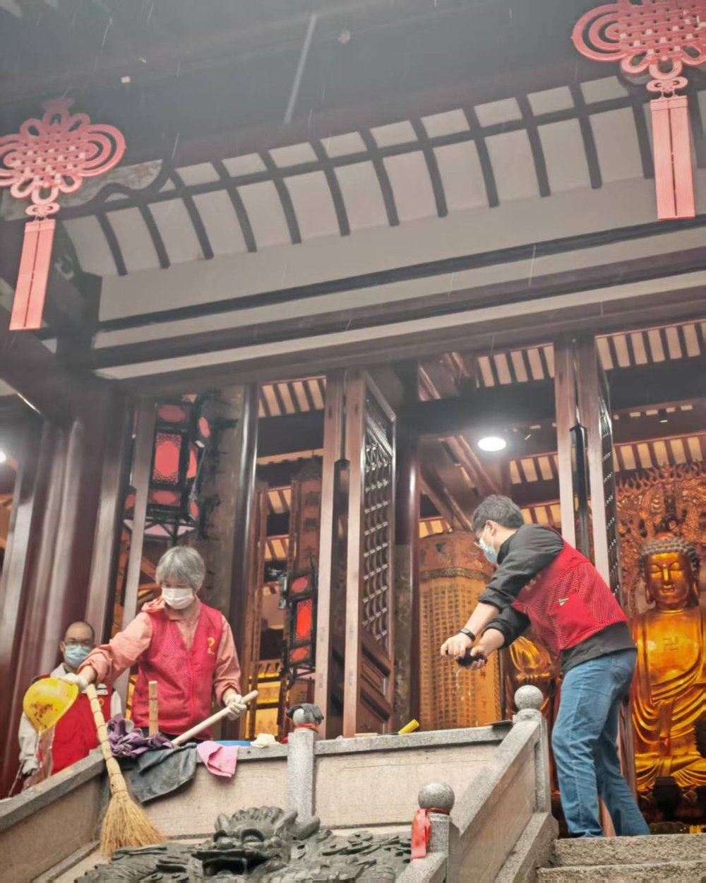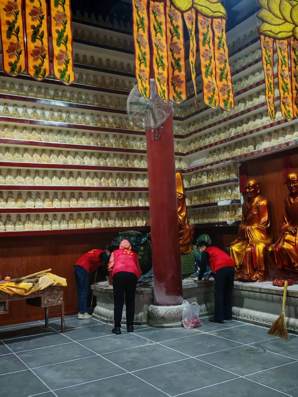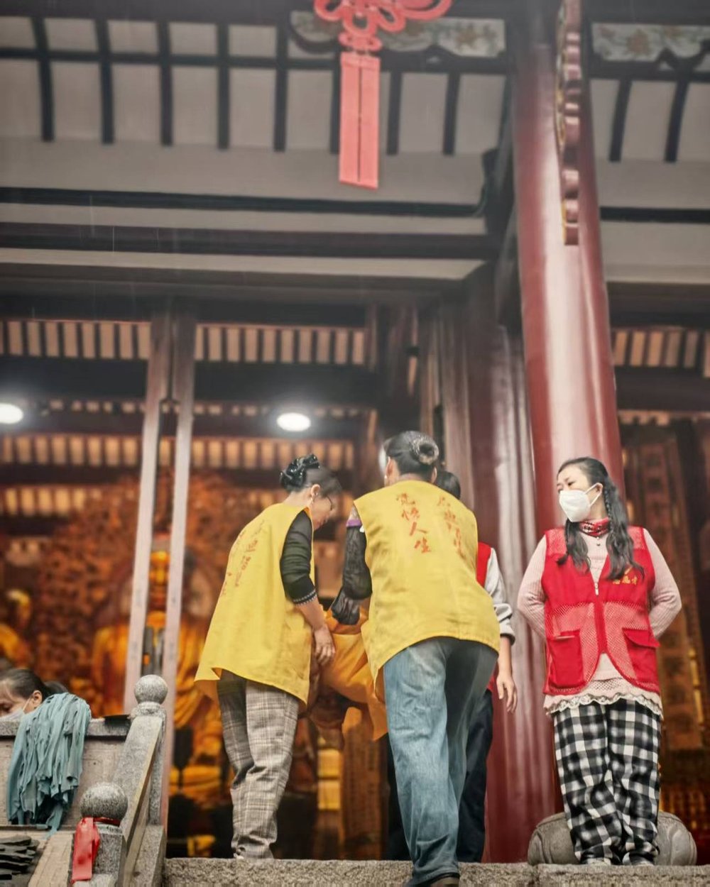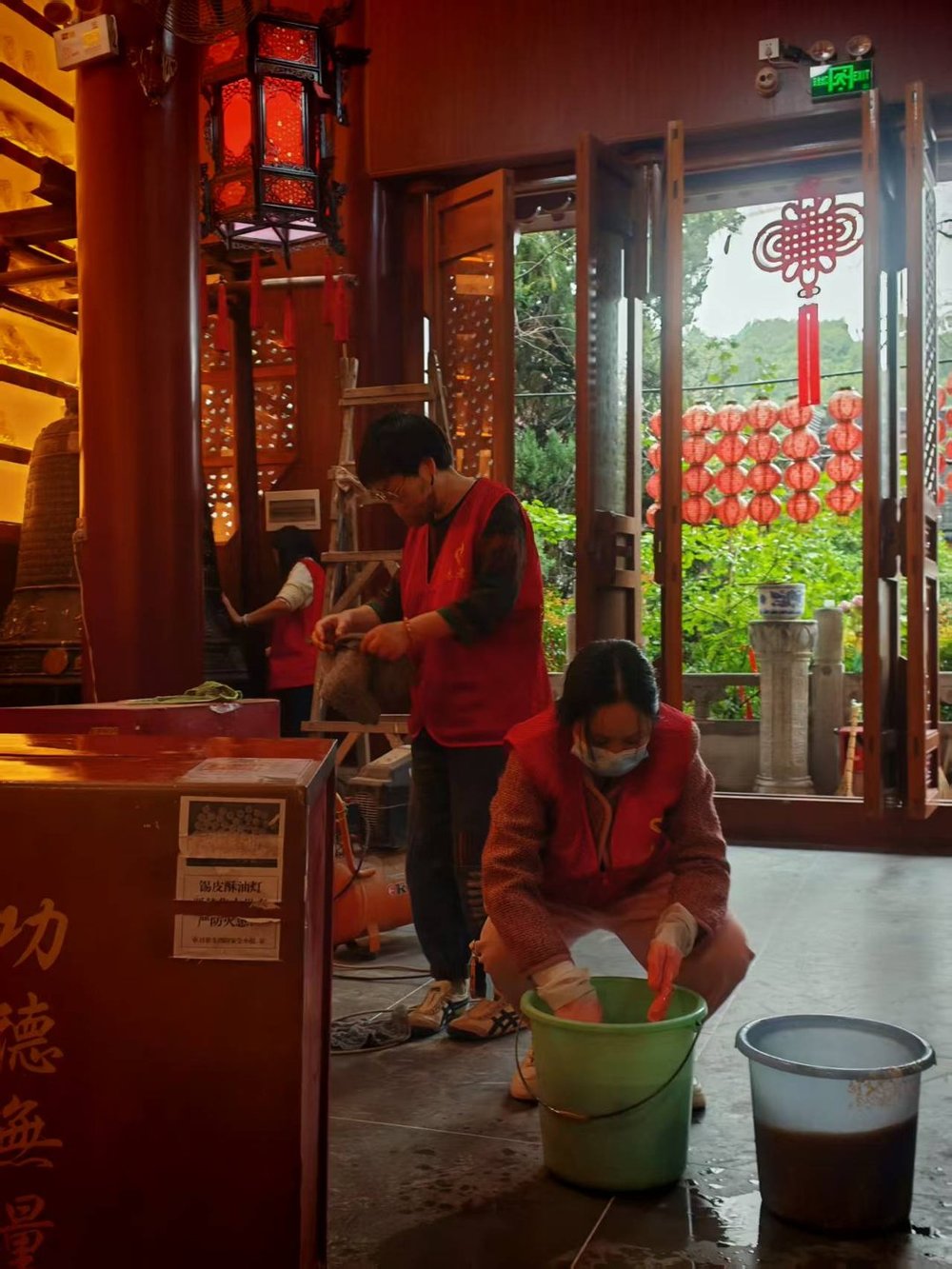 随着一项项细微之处清洁的完成,各个物件也要开始各归其位的啦,比如很重的供桌,又比如更重的功德箱