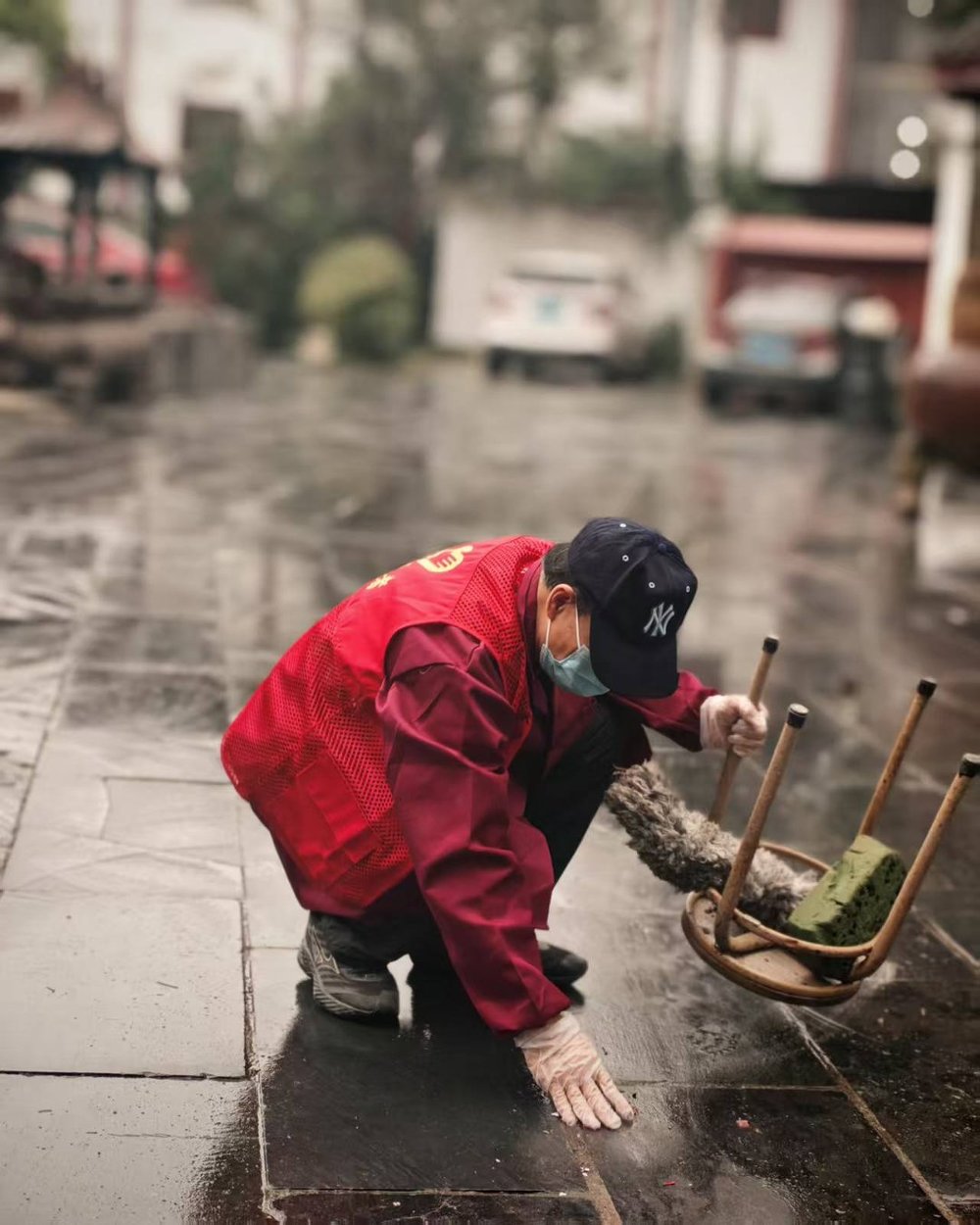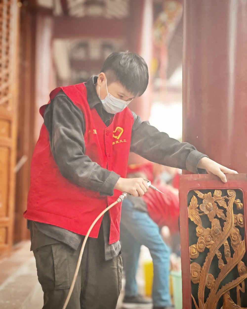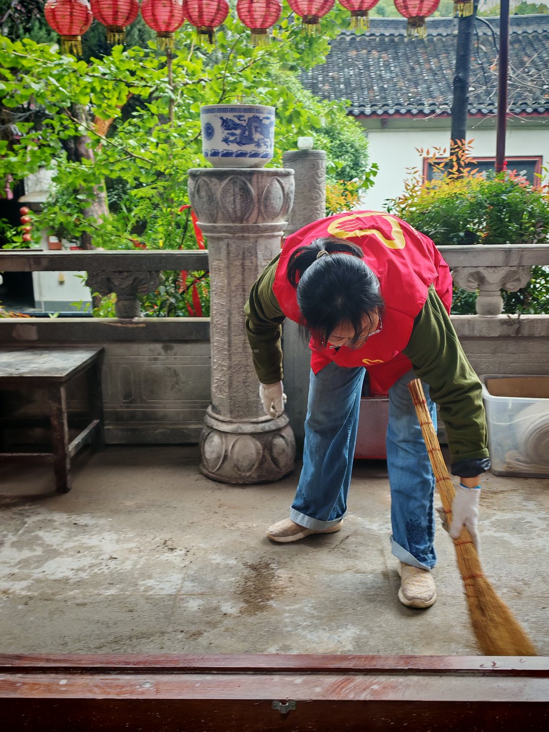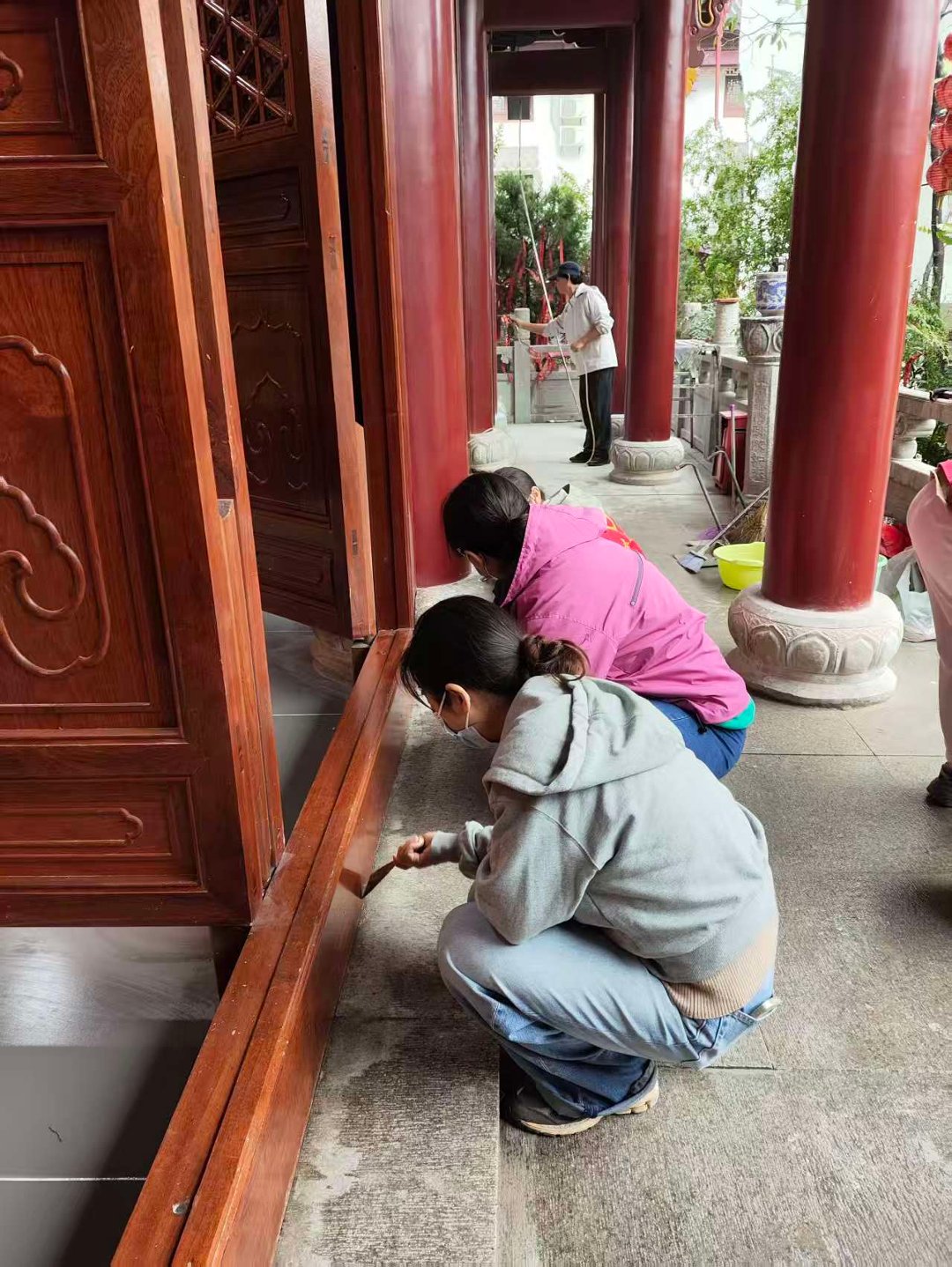 随着一项项细微之处清洁的完成,各个物件也要开始各归其位的啦,比如很重的供桌,又比如更重的功德箱