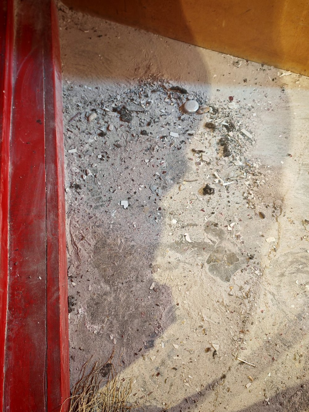 上图就是大殿里地面我随手拍的一小块地方,而开局情况就是大殿里面,无论是地面、还是台面、座面,无论是大殿四周的围廊,都是这样的灰渣尘土状态