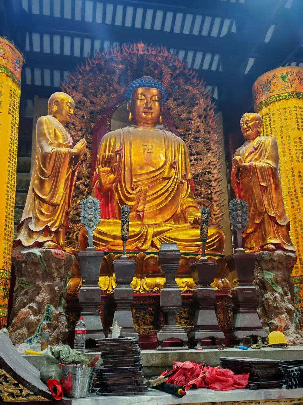 一大早我到达进入到大殿之中,满是施工将将结束甚至是尚未结束的状态,各种工具杂物堆着到处都是,从天至地蒙上了一层厚厚的灰尘,确实是一个光灰的大殿