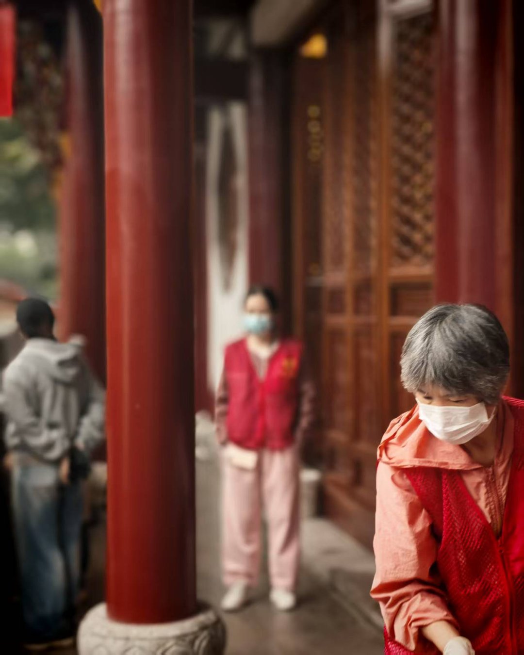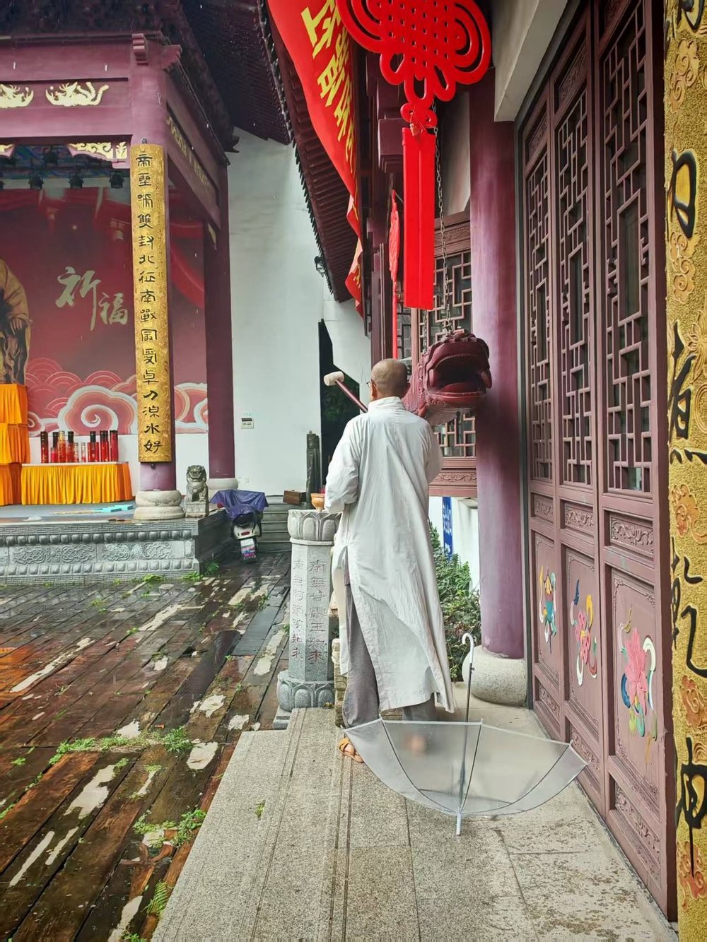 师父这时前来咨询:会有多少人来?要报斋堂备餐的,我稍思维了一下说:师父,应有三十人吧!,按照平常市区里寺院的义工活动,前来参加的人数一般应是50人左右,今天下雨天气又遇深秋初冷