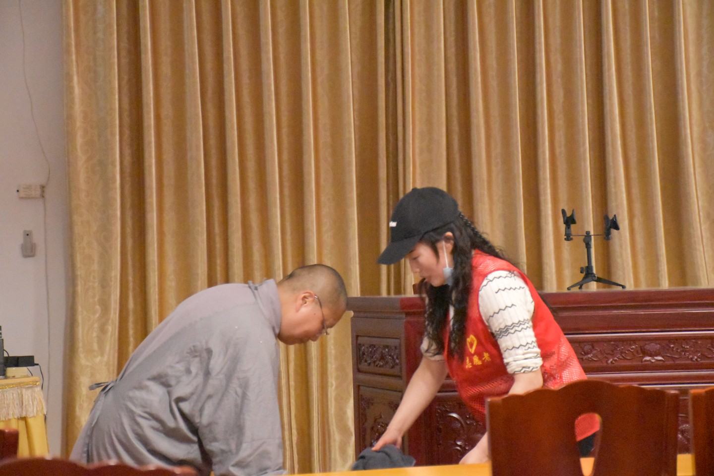 收拾收拾,认真在叠好义工服的允农师兄