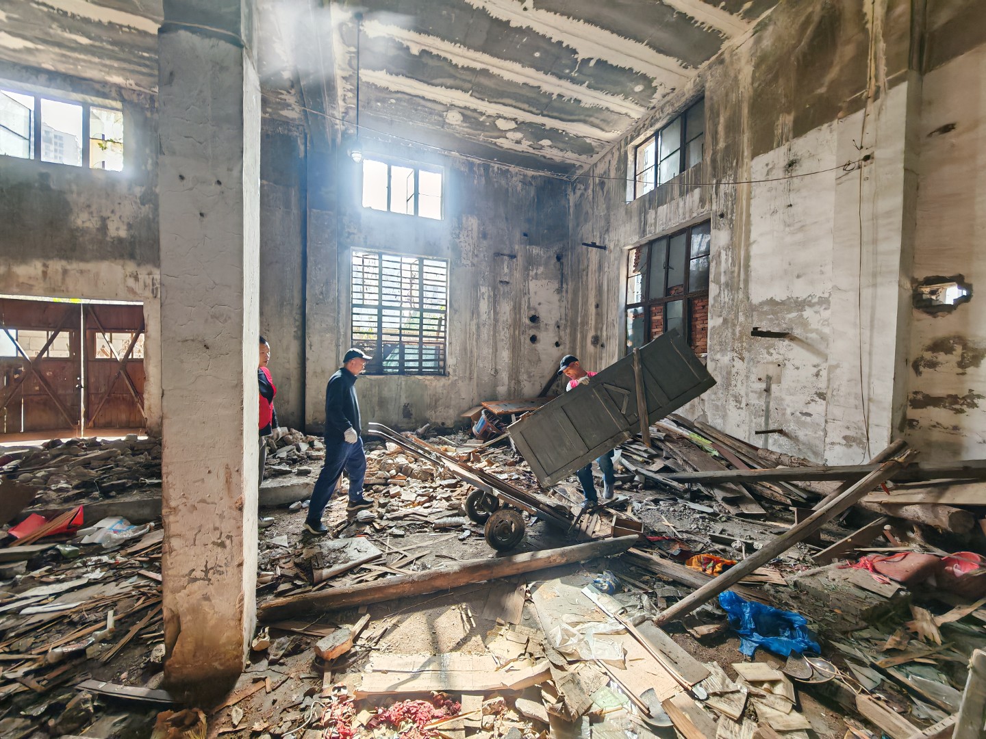 一个很大很重的柜子应该是完成了其历史使命被我们清运出了书房穿过攘攘人众来到荒凉仓库