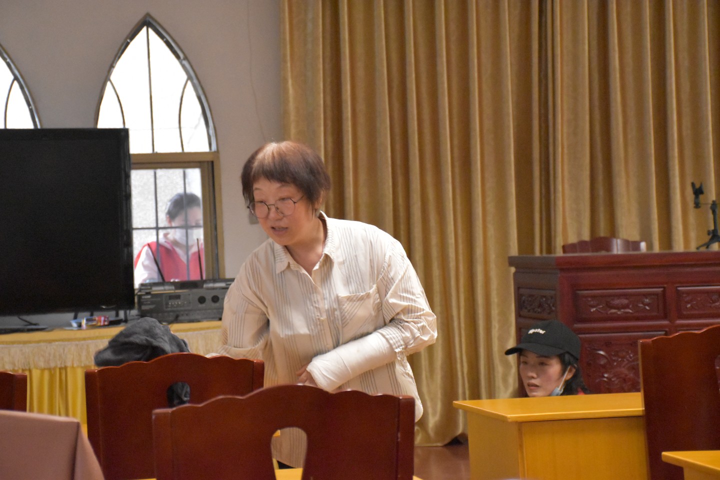 印泓师兄左手打着石膏也来了且没闲着
