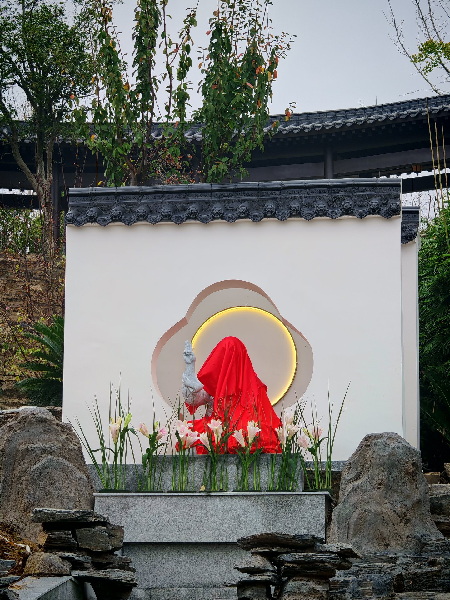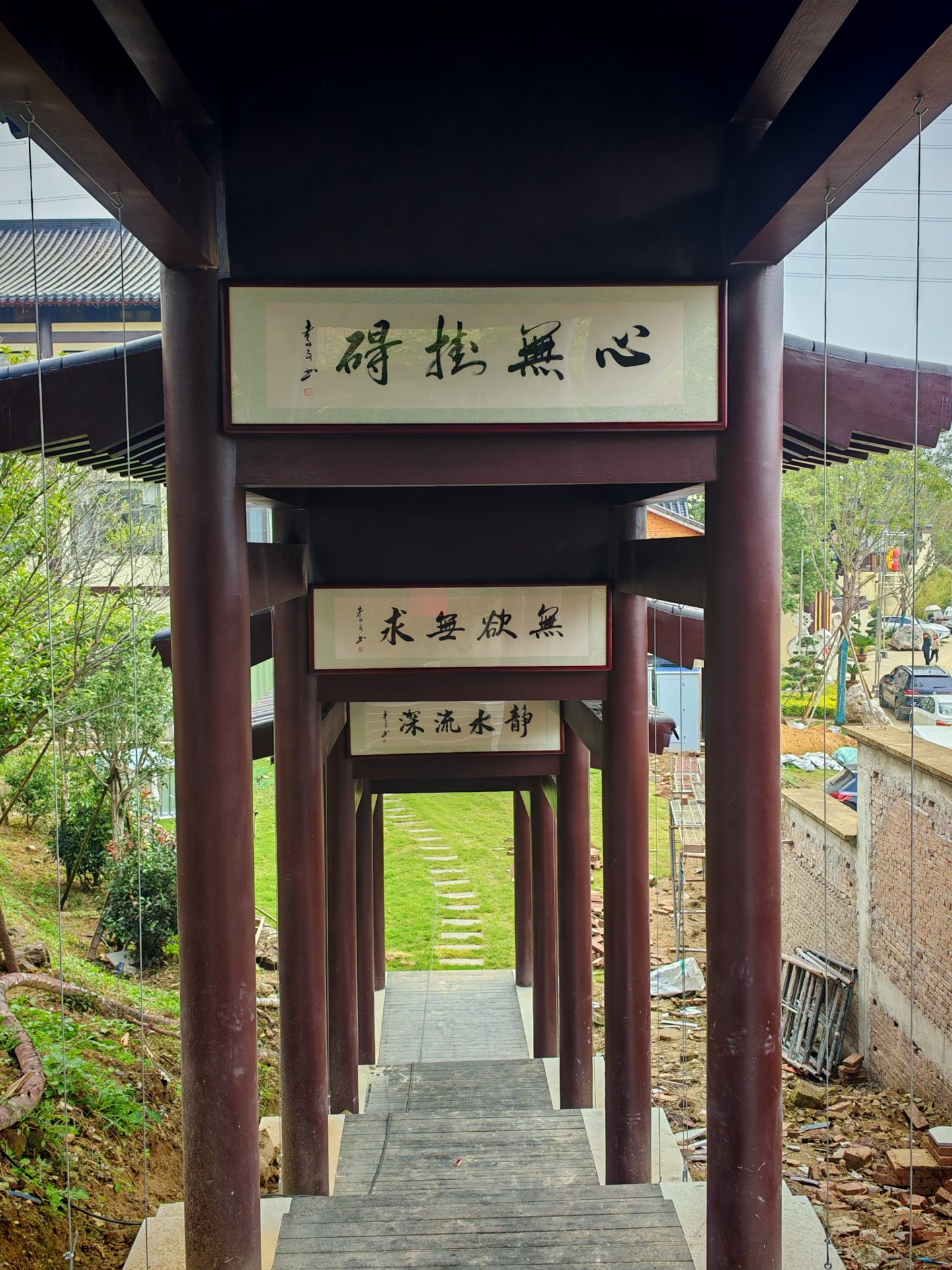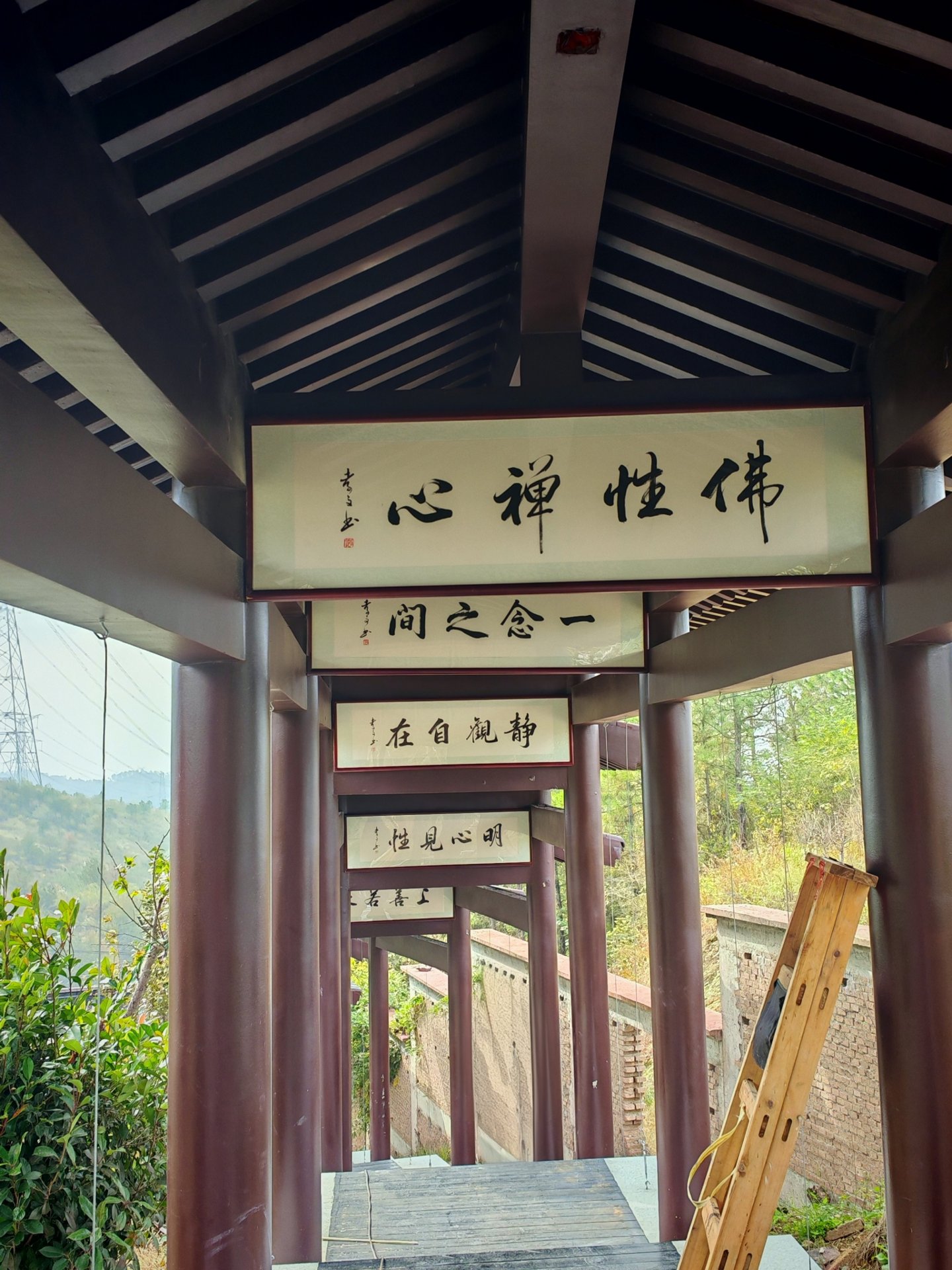 寺院西侧的长廊几近完工,是日正在安装孝文师父亲书的字匾,拍了几张给大家一品